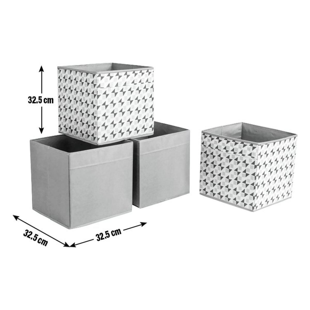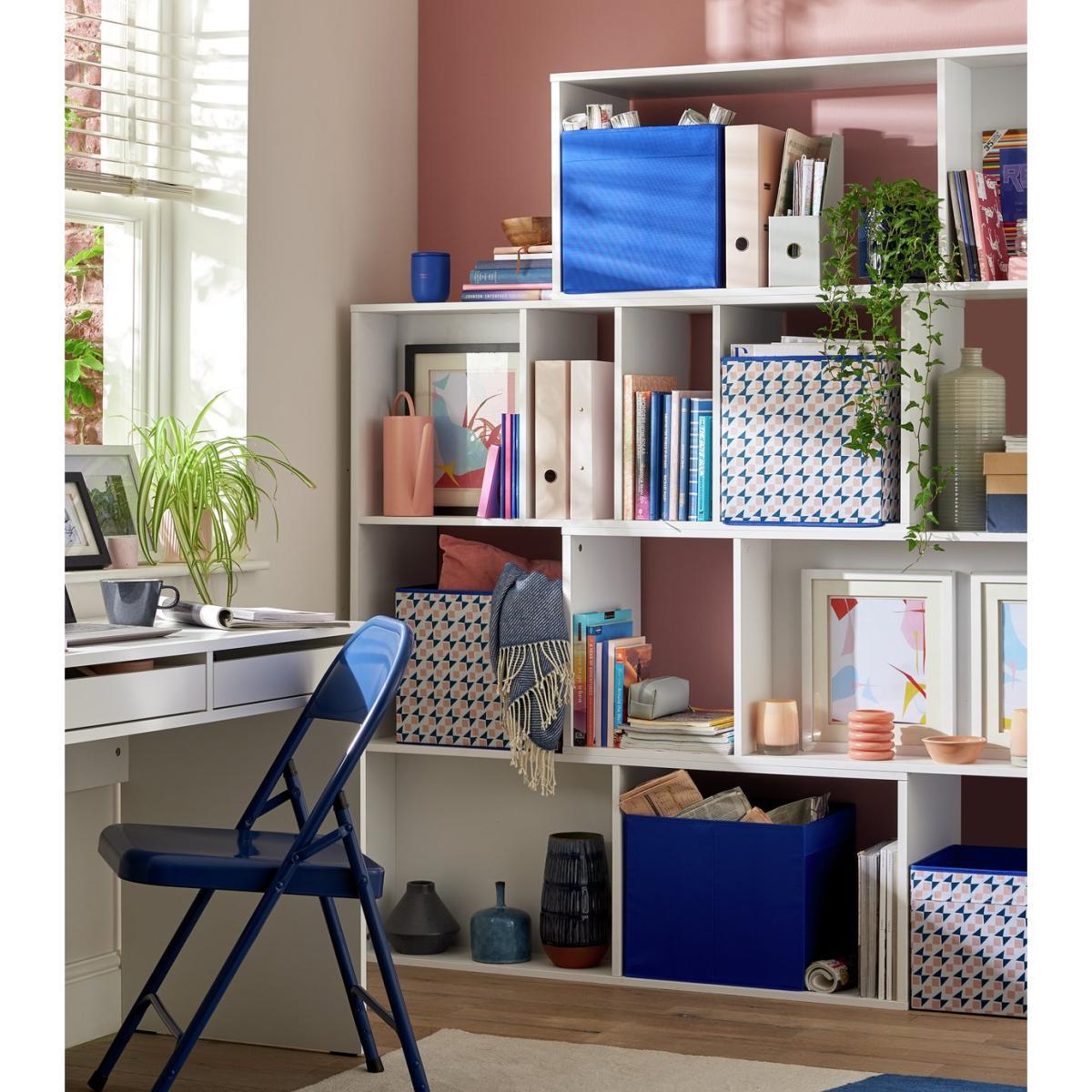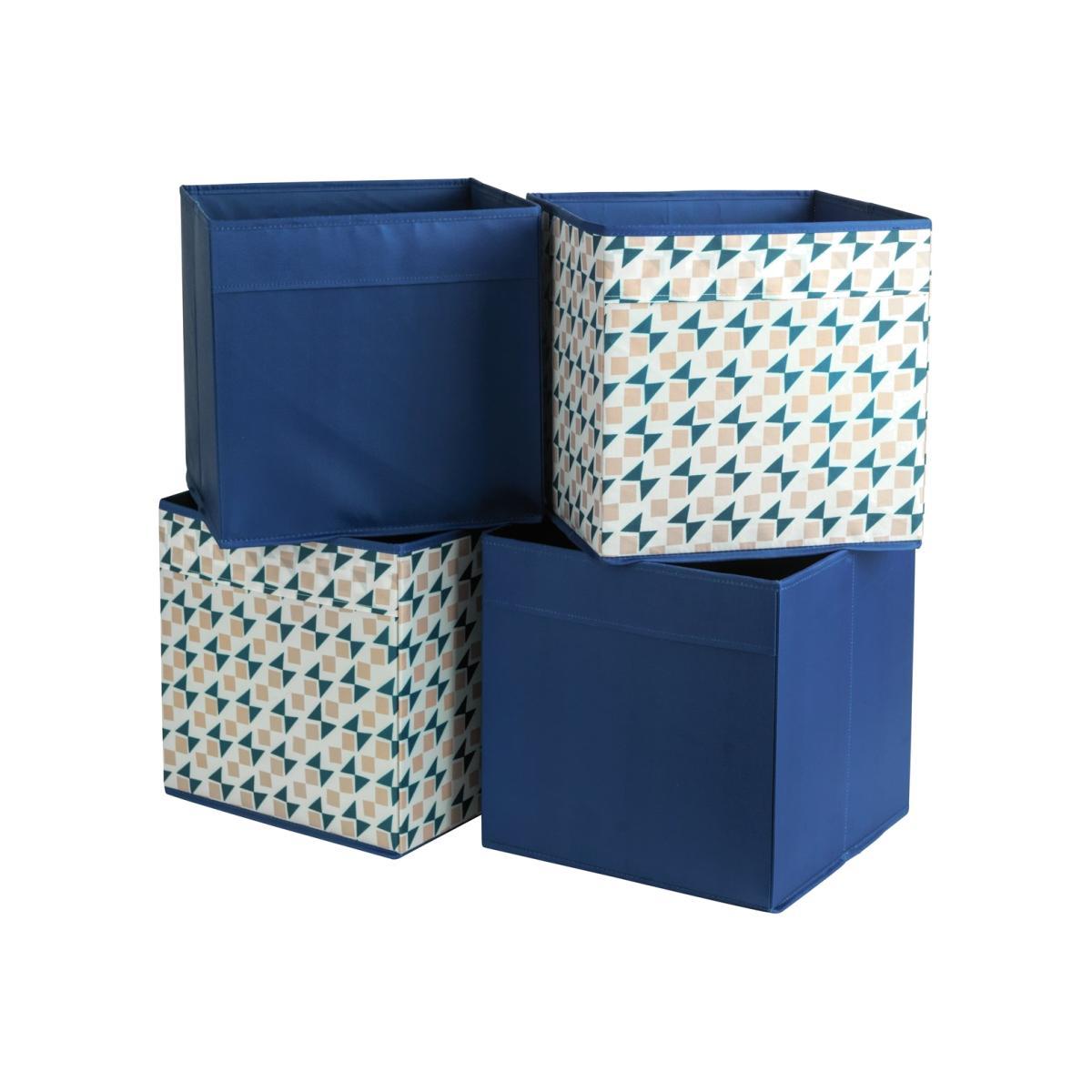Time for a tidy up? These retro patterned open storage boxes are just the ticket for keeping things neatly out of sight. Tuck away clothes, shoes, accessories, bathroom bits and bobs. Stack them in your wardrobe, slide them under your bed, or show off this handsome foursome on your shelves. They come flat packed, so you can simply fold them away when not in use. Now that's some seriously smart storage. Folds for storage. Large box size H32.5, W32.5, D32.5cm. Weight 2.6kg. Minimal assembly. General Information:We are excited to be welcoming some of our favourite HOME products into the Habitat range. Your product may arrive in Habitat or HOME packaging. Manufacturer's 1 year guarantee.