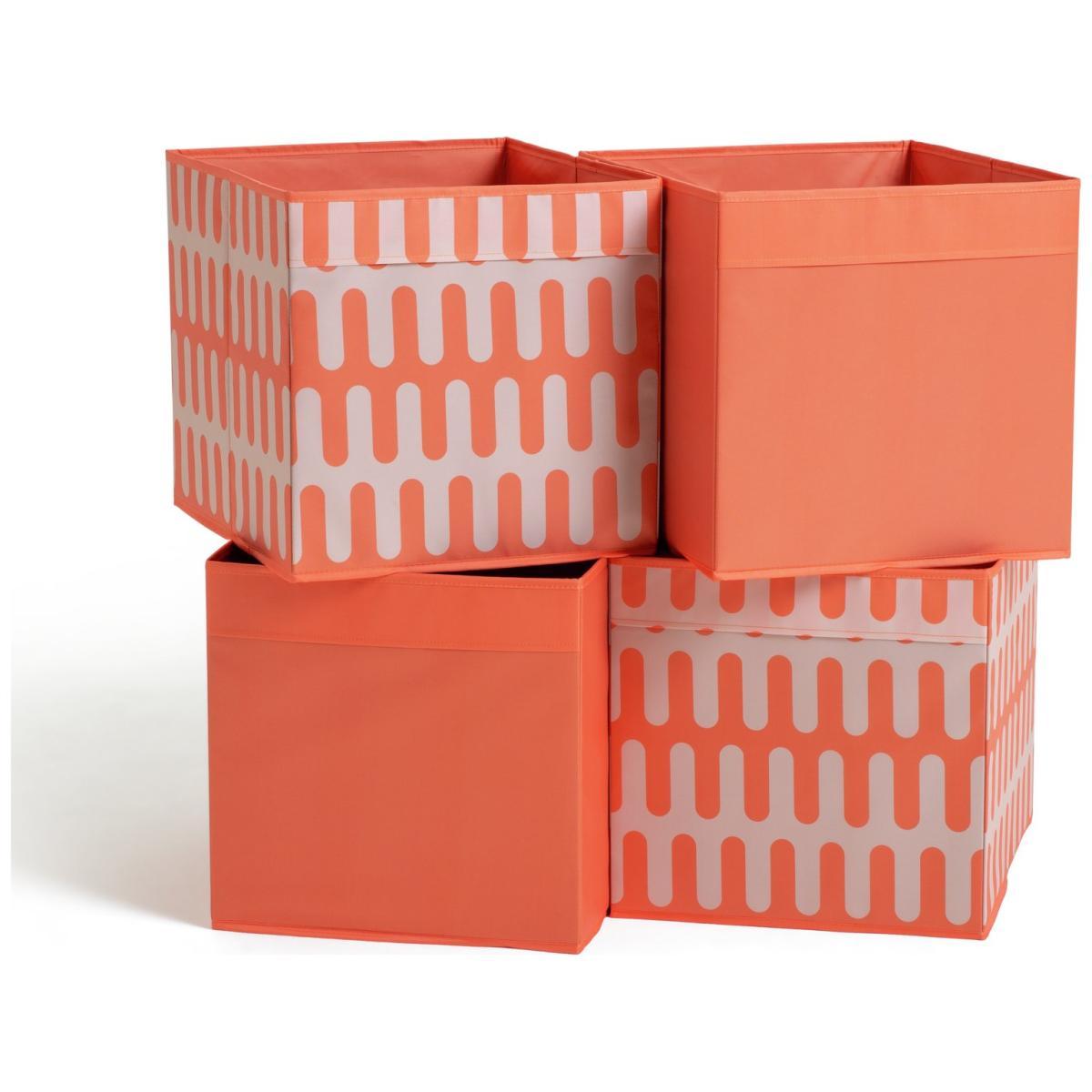 Out of sight, out of mind. Keep your space clutter-free with our handy square storage boxes. Small toys everywhere? Stationary looking for a home? We've got you. Ideal for all sorts of bits and bobs, these 4 cheerful containers also add a pop of vibrant colour to your office or bedroom. Each one is foldable too. Just pack flat and tuck away when not needed. Neat. Folds for storage. Box size H32.5, W32.5, D32.5cm. Weight 2.6kg. Minimal assembly. General Information:We are excited to be welcoming some of our favourite HOME products into the Habitat range. Your product may arrive in Habitat or HOME packaging. Manufacturer's 1 year guarantee.