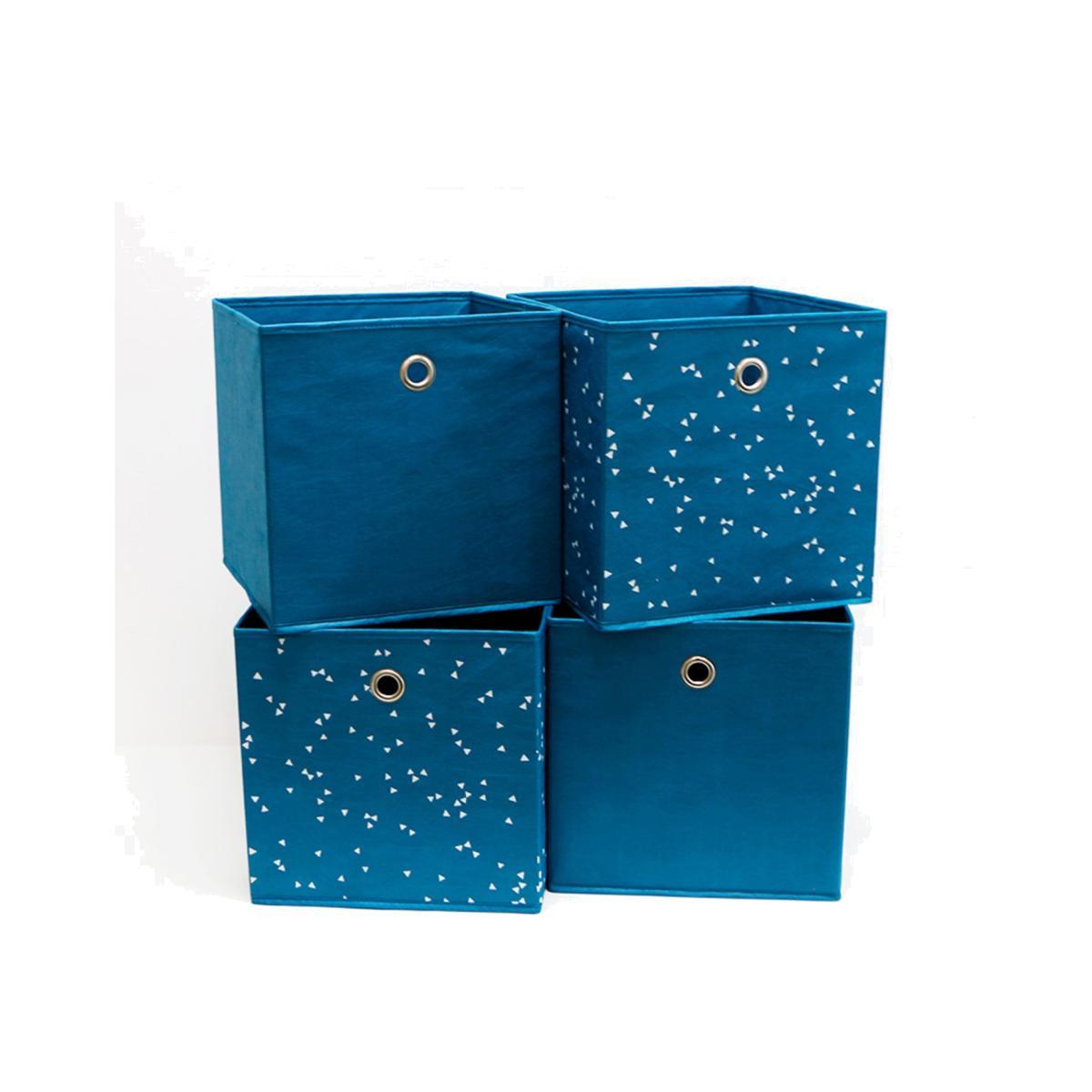 Handy open storage boxes are just the ticket for storing seasonal clothes, shoes, accessories and linens. These 4 square boxes in teal are designed to fit perfectly with the Habitat Squares storage unit, but you can use them just about anywhere. Store them in your wardrobe, under your bed, in a divan drawer or elsewhere. They come flat packed, so you can simply tuck them away when not in use. Folds for storage. Box size H32.5, W32.5, D37cm. Small box size H32.5, W32.5, D37cm. Large box size H32.5, W32.5, D37cm. Weight 1.8kg. Minimal assembly. General Information:Manufacturer's 1 year guarantee.