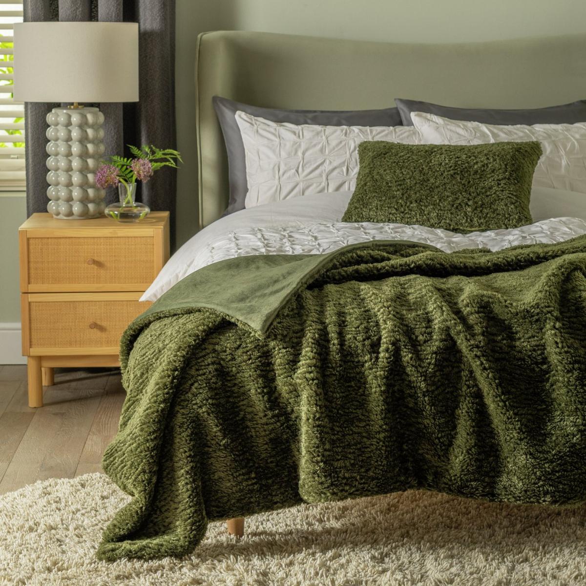 Habitat Shearling Throw - Moss Green - 125x150cm