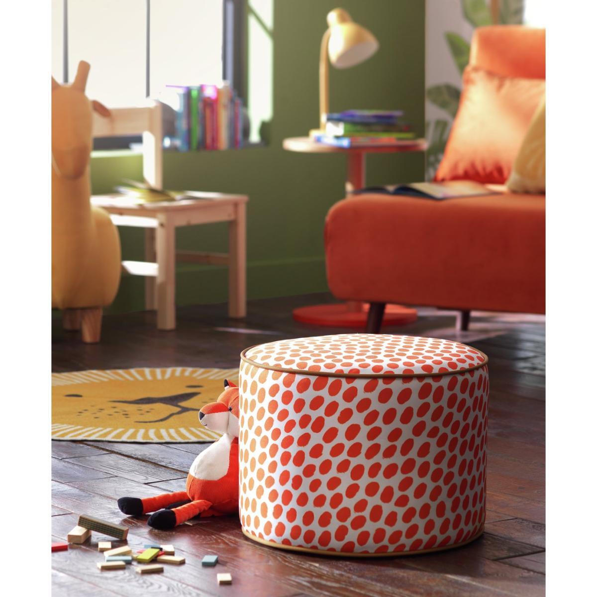 A playful perch. The Sienna cheetah spot pouffe is just that. Soft and supportive, it's ideal for crafting, reading, or playing, pairing perfectly with the Sienna table too. Featuring an all-over spotted design in colourful orange and cream, it makes a vibrant addition to your little one's playroom or bedroom. Pull up a seat!