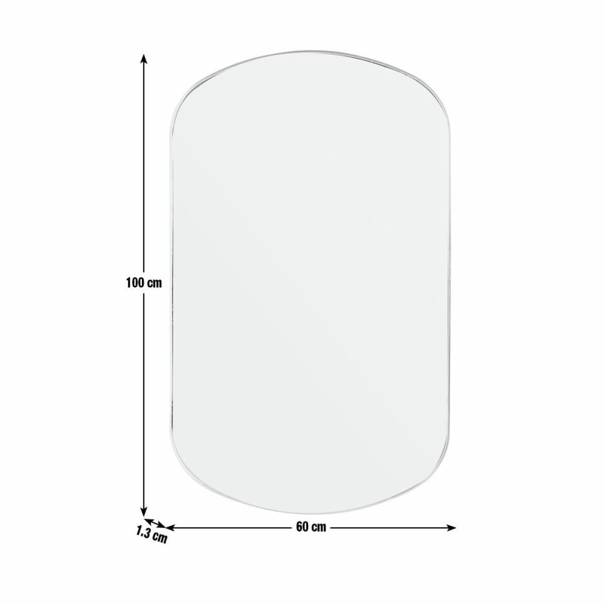 Soft edges. Strong presence. Framed in slim silver aluminium, this pill shaped mirror balances gentle curves with clean lines. The look is modern, approachable and totally versatile. Hang it in the hallway, bedroom or dressing space to open up the room and quietly reflect your style. Size H100, W60, D1.3cm. Frame material: Metal. Hanging fixture type: Keyhole. Wall mounted mirror. Can be hung vertically only. Total weight: 7.01kg. Fully assembled. Distance between fixings 35.9cm. General information: By choosing FSC certified products, you are supporting responsible management of the world's forests.