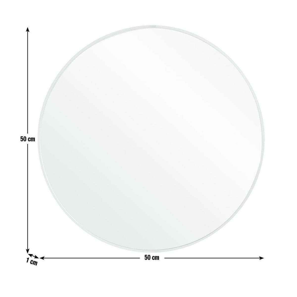 Well rounded. In every sense. This perfectly circular 50x50 mirror softens a space and enhances a wall. In a slim silver aluminium frame, it's ideal in a hallway for a last-minute-leaving glance, or in the bedroom or bathroom where good lighting (and good mirrors) matter. Simple, sculptural and always in style. Size H50, W50, D1cm Diameter 50cm. Frame material: Metal. Hanging fixture type: Keyhole. Wall mounted mirror. Total weight: 3kg. Fully assembled. General information: By choosing FSC certified products, you are supporting responsible management of the world's forests.