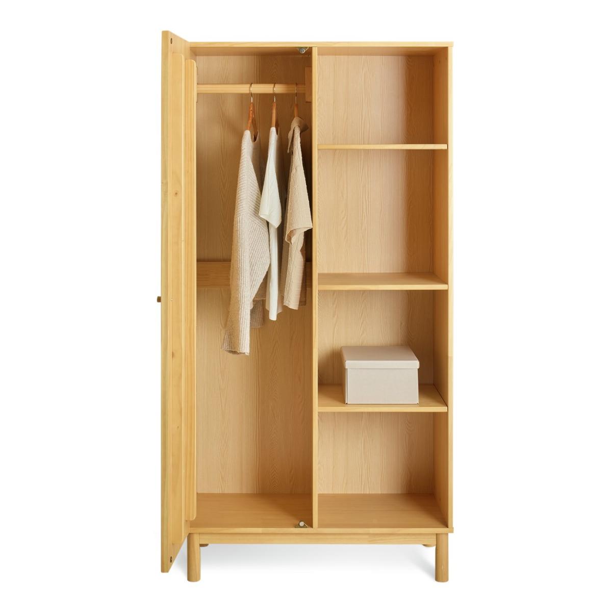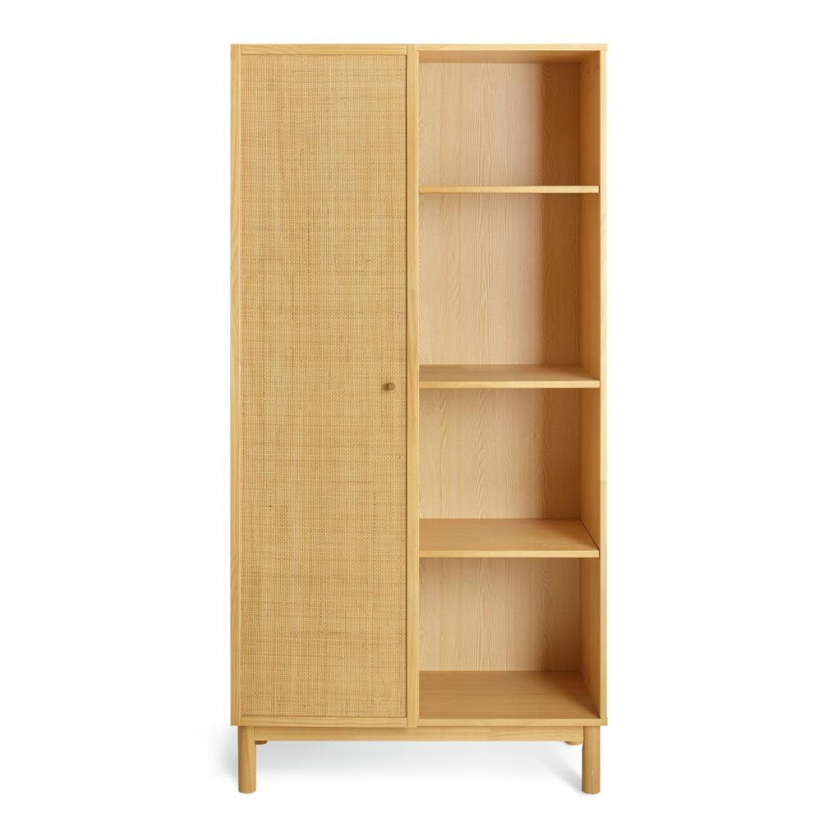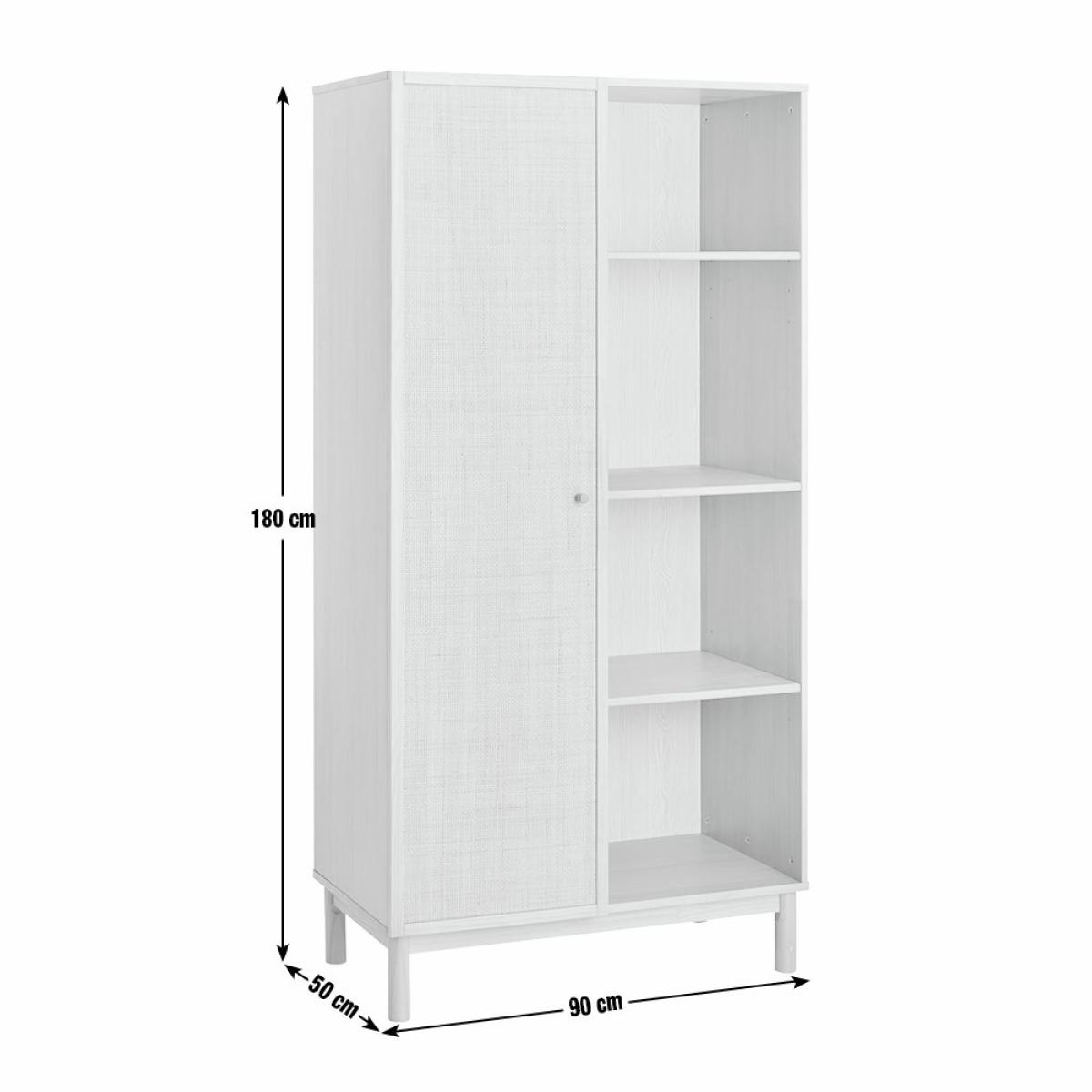 Style and storage, Simone has plenty of both. The pine frame and rattan panelling of this combi wardrobe scream boho chic. Hang shirts, skirts, dresses, and jackets on the rail inside. And pop foldables on the 4 open shelves. Or even a basket or two for accessories. Now there's a thought. Trust Simone to keep things smart. Part of the Simone collection. Made of pine and MDF. Wooden handles. Additional handles not included. 1 door. Soft close. 1 fixed hanging rail. Hanging rail holds up to 35kg. 2 fixed shelves. 2 adjustable shelves. Self-assembly - 2 people recommended (includes wall fixings). If this product is over 60cm high it must be securely attached to the wall to prevent overturning. Dimensions: Size H180, W90, D50cm. Internal hanging space H148, W41.4, D46cm. Handle size: L2.5, W2cm. Weight 47kg. Package Dimensions: Package 1 dimensions: H17.5, W99, D56cm. Package 1 weight: 18.65kg. Package 2 dimensions: H15.5, W172.5, D56.5cm. Package 2 weight: 37.07kg. General information: By choosing FSC certified products, you are supporting responsible management of the world's forests.