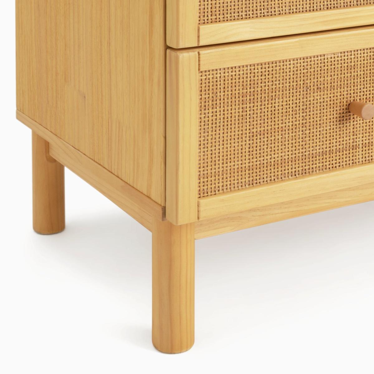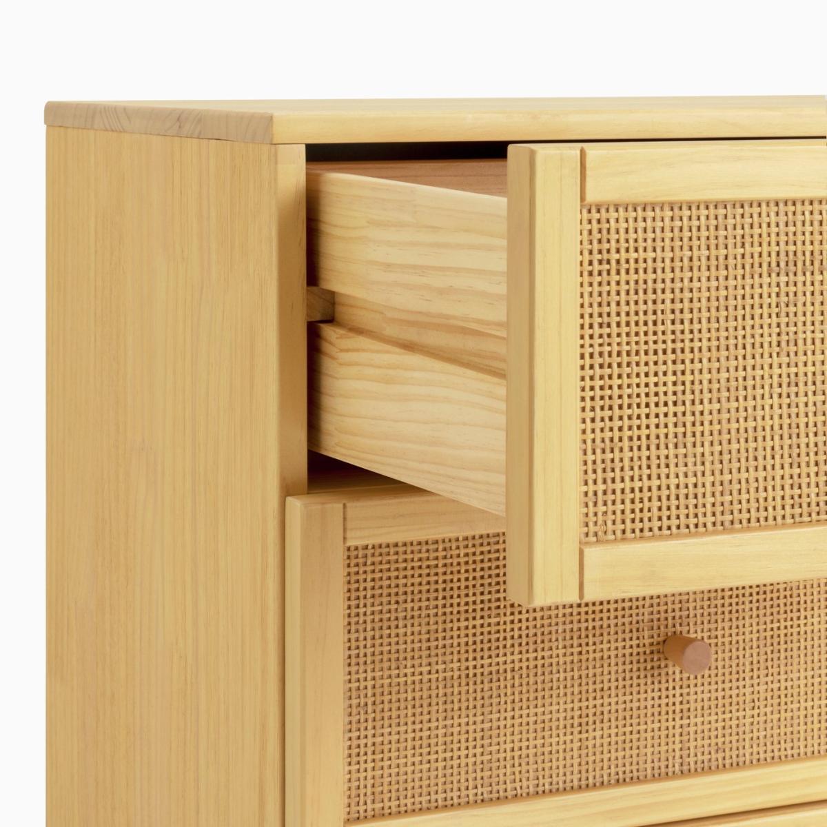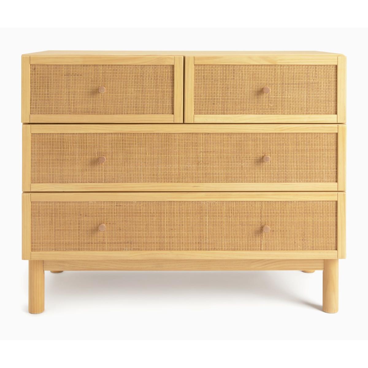 Meet Simone. She's got a great sense of style that screams boho chic. Just look at the pine frame and rattan paneling, and the round handles and legs that bring it all together. Generous too. Inside this chest of drawers there's heaps of room. The 2 top drawers are handy for accessories and cosmetics. The 2 wider bottom drawers are just right for foldables. Fancy your own make-up station? There's plenty of space on top to add a mirror. Gorgeous, right? Love the organic look? We've lots more pieces in rattan to complete the theme. Part of the Simone collection. Made of MDF and pine. Wooden handles. Additional handles not included. 4 drawers with wooden runners. Self-assembly - 2 people recommended (includes wall fixings). If this product is over 60cm high it must be securely attached to the wall to prevent overturning. Dimensions: Size H77, W90, D50cm. Internal drawer H14, W47, D38cm. Large internal drawer H14, W101, D40cm. Handle size: L2.5, W3cm. Weight 44kg. Package Dimensions: Package 1 dimensions: H15.5, W120.6, D50,. Package 1 weight: 29kg. Package 2 dimensions: H10.6, W65.3, D50.8cm. Package 2 weight: 24kg. General information: We are excited to be welcoming some of our favourite HOME products into the Habitat range. Your product may arrive in Habitat or HOME packaging. Manufacturer's 1 year guarantee.