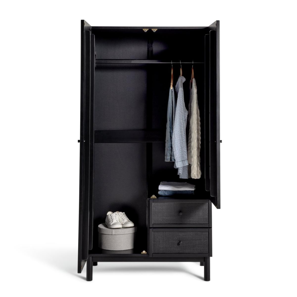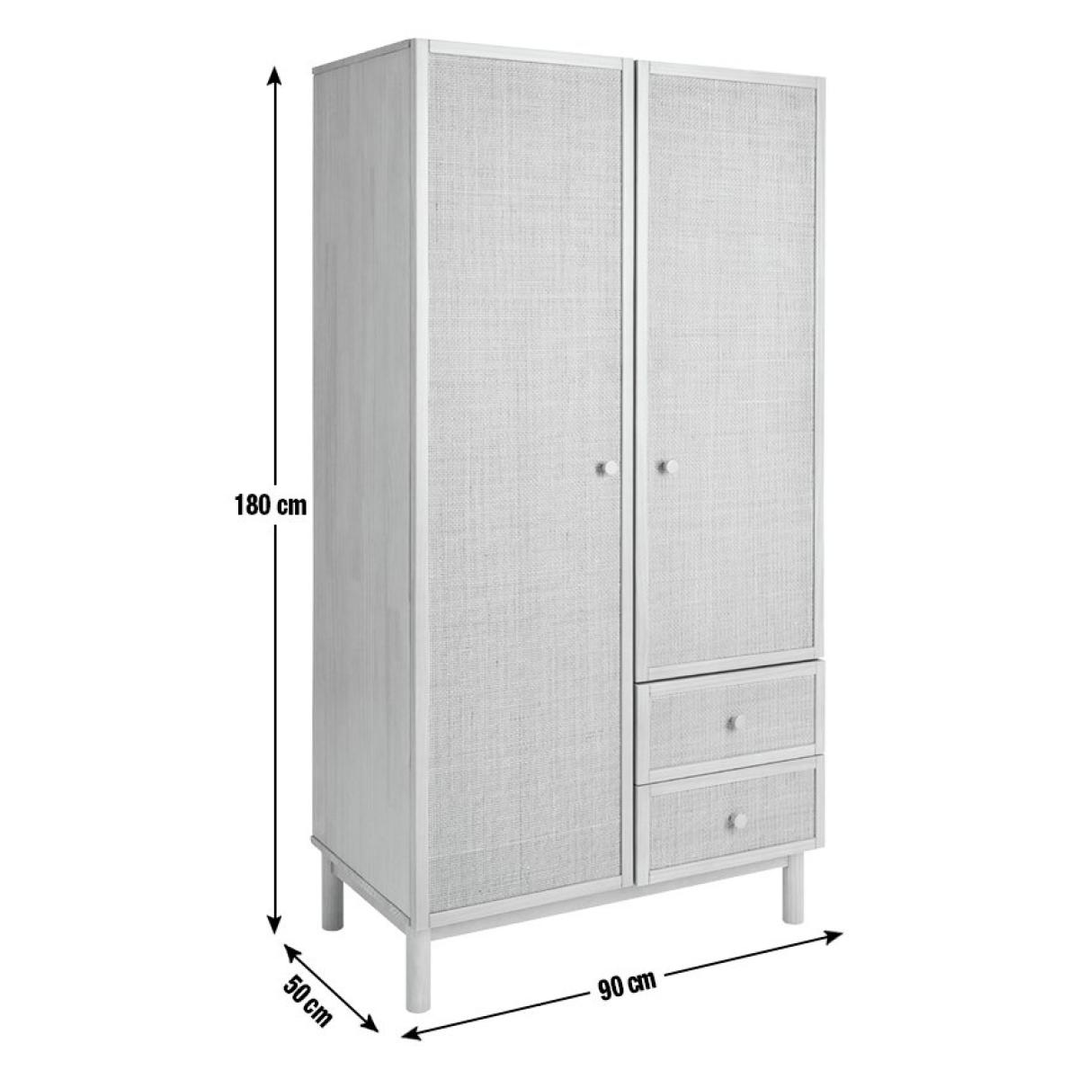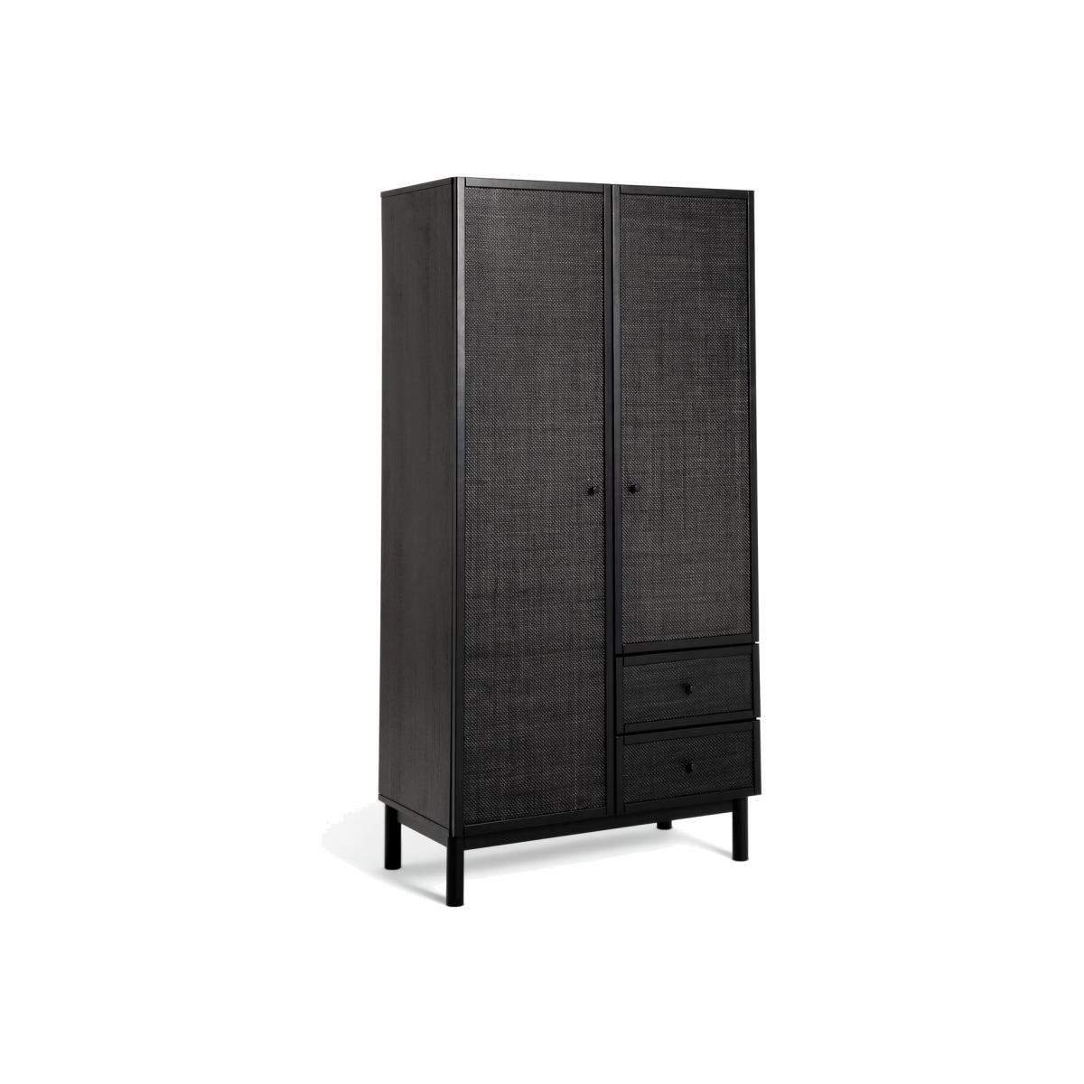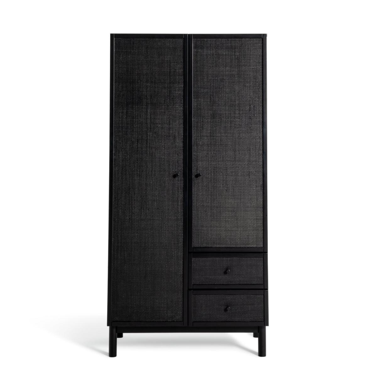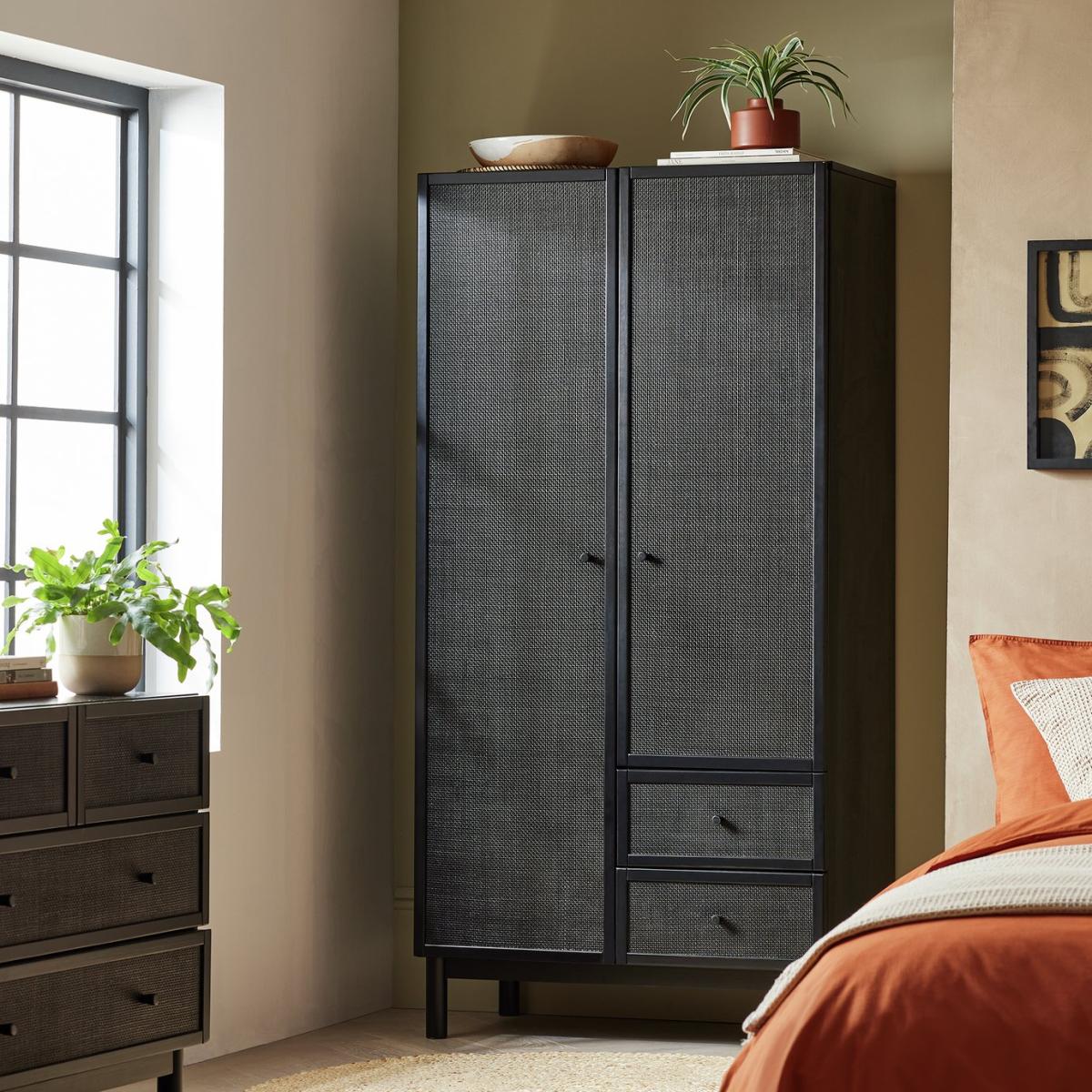Meet Simone. A 2-door wardrobe that screams boho chic. Just look at the pine frame and rattan paneling, and the round handles and legs that bring it all together. There's a split hanging rail, perfect for organising your outfits. While the 2 roomy drawers are just the spot for smalls and accessories. Love the organic look? We've lots more pieces in rattan to complete the theme. Part of the Simone collection. Made of MDF and pine. Wooden handles. Additional handles not included. 2 doors. 2 drawers with wooden runners. 1 adjustable hanging rail. Hanging rail holds up to 10kg. 1 fixed shelf. Self-assembly - 2 people recommended (includes wall fixings). If this product is over 60cm high it must be securely attached to the wall to prevent overturning. Dimensions: Size H180, W90, D50cm. Internal hanging space H157, W86, D47cm. Internal drawer H14, W44, D45cm. Large internal drawer H14, W44, D45cm. Handle size: L2.5, W3cm. Weight 53kg. Package Dimensions: Package 1 dimensions: H15, W100.6, D56cm. Package 1 weight: 21kg. Package 2 dimensions: H12.2, W173.2, D55.8cm. Package 2 weight: 35kg. FSC certified meaning the materials used for this product are responsibly sourced. General information: We are excited to be welcoming some of our favourite HOME products into the Habitat range. Your product may arrive in Habitat or HOME packaging.