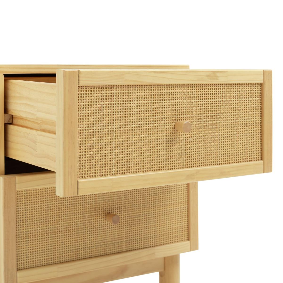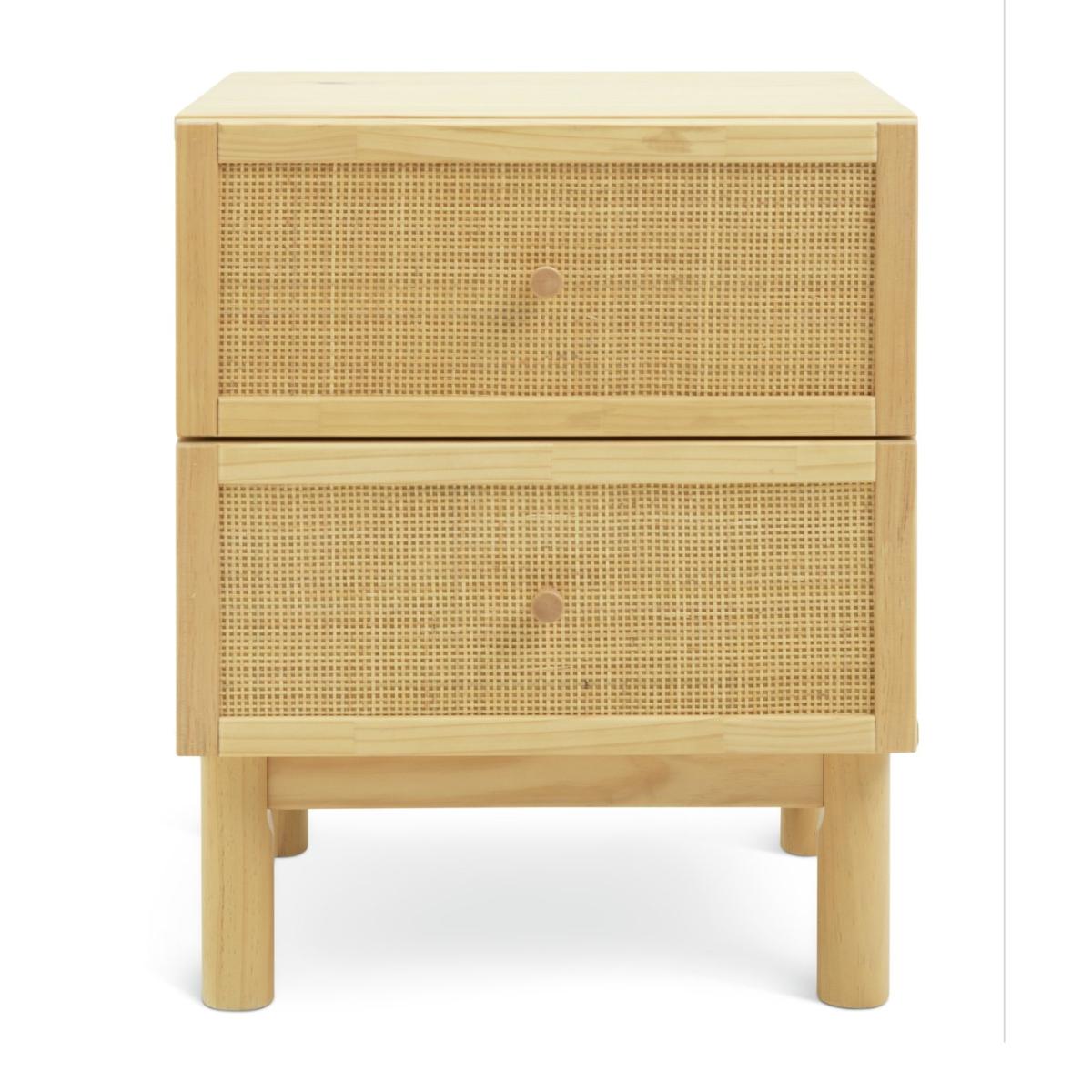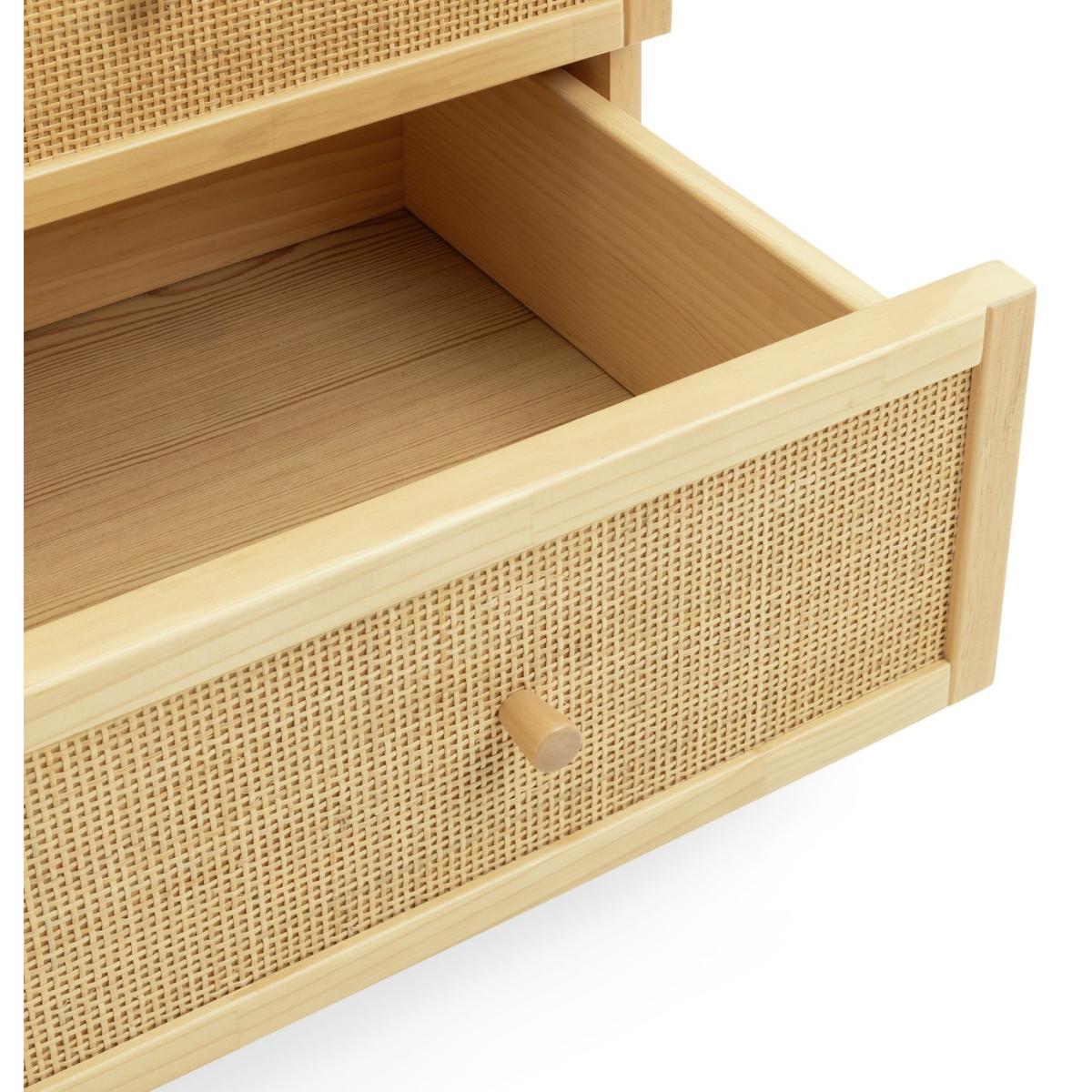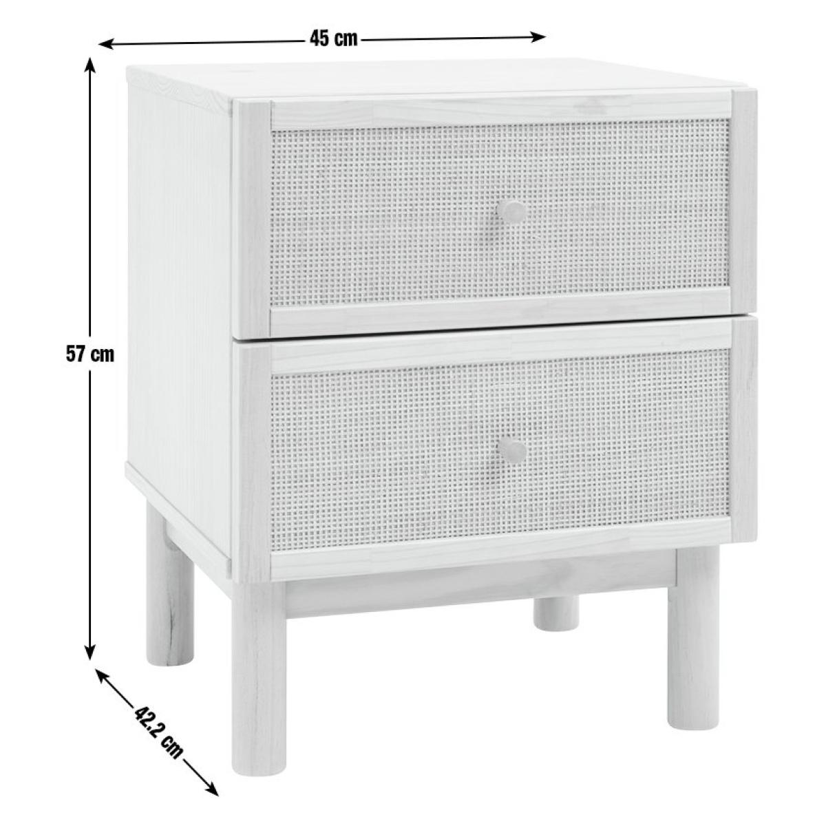 Simone is warm and welcoming with a hint of the tropics. As you'd expect from a Habitat designed bedside cabinet, Simone looks a cut above. See how the solid pine is elevated by rattan detailing on the front. The 2 deep drawers have room for nighttime essentials, like phone, charger and bedtime read. And plenty of space on top for a lamp. Want to extend the look? See the rest of our Simone collection. Part of the Simone collection. Made of pine and rattan. Wooden handles. Additional handles not included. 2 drawers with wooden runners. Self-assembly - 1 person recommended (includes wall fixings). If this product is over 60cm high it must be securely attached to the wall to prevent overturning. Dimensions: Size H57, W45, D42.2cm. Internal drawer H14, W36, D35cm. Handle size: L2.5, W3cm. Weight 11.8kg. Package Dimensions: Package 1 dimensions: H21.5, W53.5, D50cm. Package 1 weight: 13.5kg. General information: FSC certified meaning the materials used for this product are responsibly sourced. Manufacturer's 1 year guarantee.