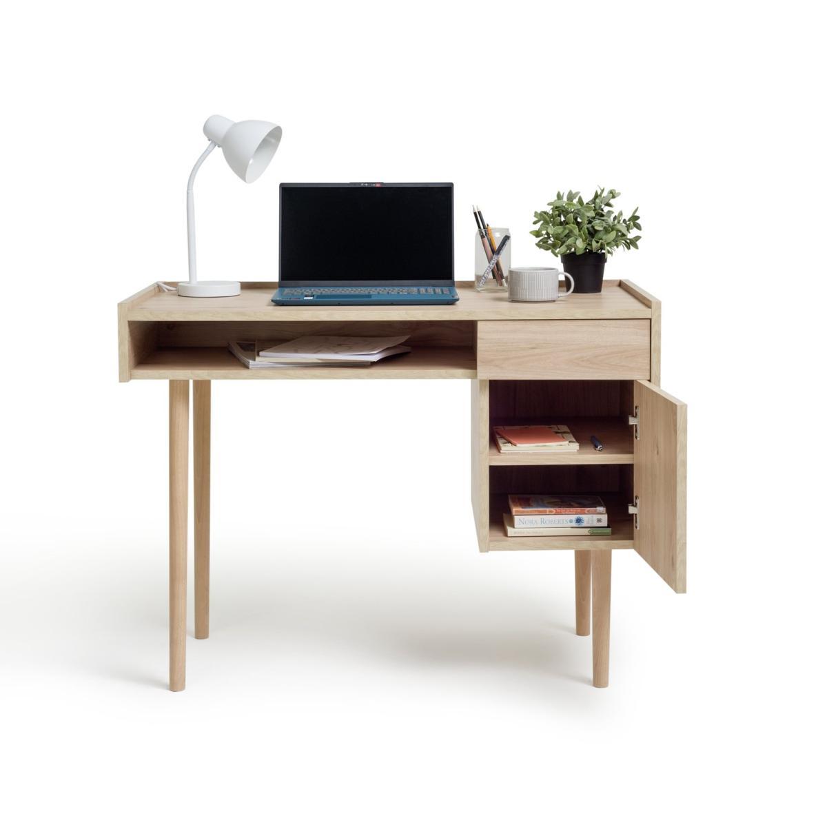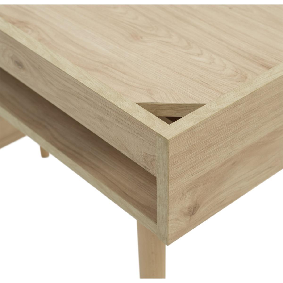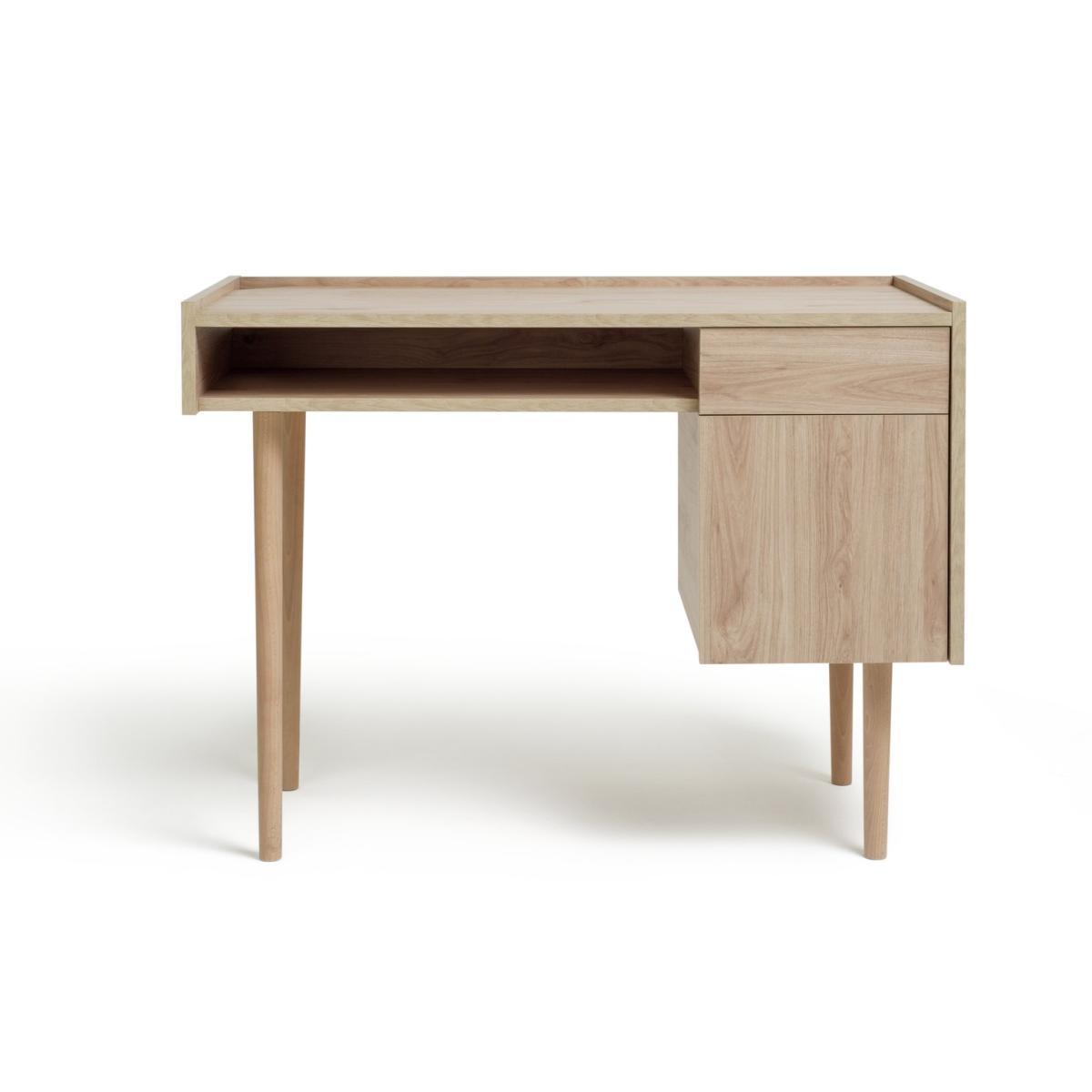 Simple, minimalist style - that's the Skandi desk. In natural oak-effect wood, with clean lines and tapered legs, this timeless desk is a work from home essential. Crafted with ample storage, you can keep all your documents and files organised with the built-in drawer and cupboard. There's even a fixed shelf for storing books, stationary or your keyboard when it's not in use. A natural beauty, take your office space to the next level with the Skandi desk.