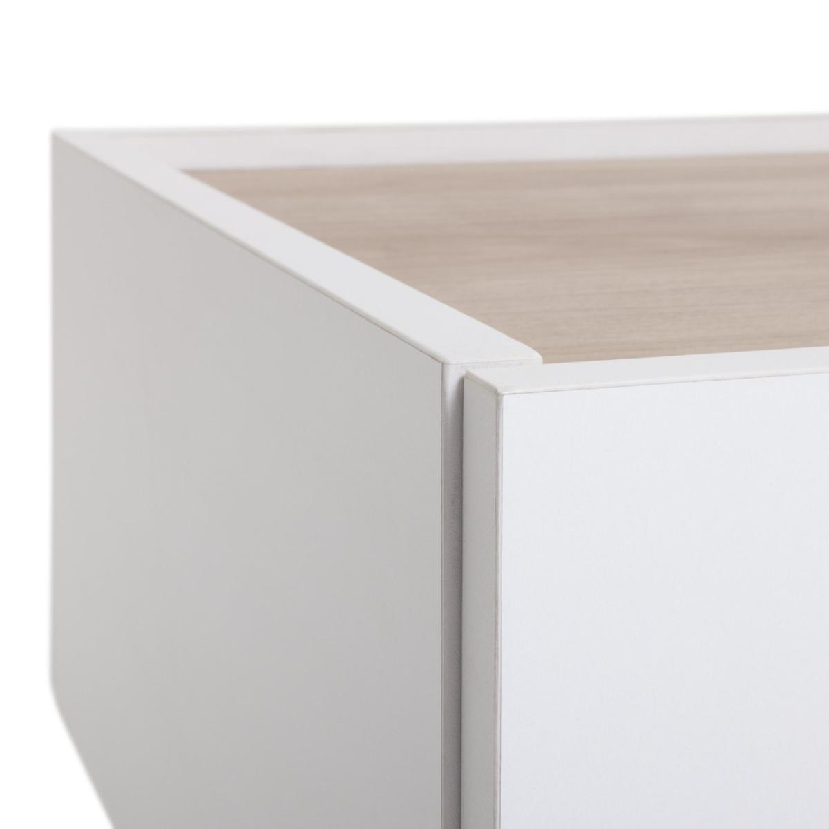 I love this coffee table because of its sleek two-tone design, which offers a modern yet versatile look. The white and wood finish makes it a great statement piece that works well in Scandi or contemporary interiors, but it’s equally adaptable for eclectic or minimalist spaces. When styling, consider adding textured or colourful accessories on top-such as a stack of books, a small plant, or decorative objects-to bring personality and warmth. Its practical drawers also provide handy storage, helping keep your living area tidy. For best results, pair it with neutral or pastel-toned furnishings and keep the surroundings light and airy to emphasise its Scandinavian-inspired aesthetic.