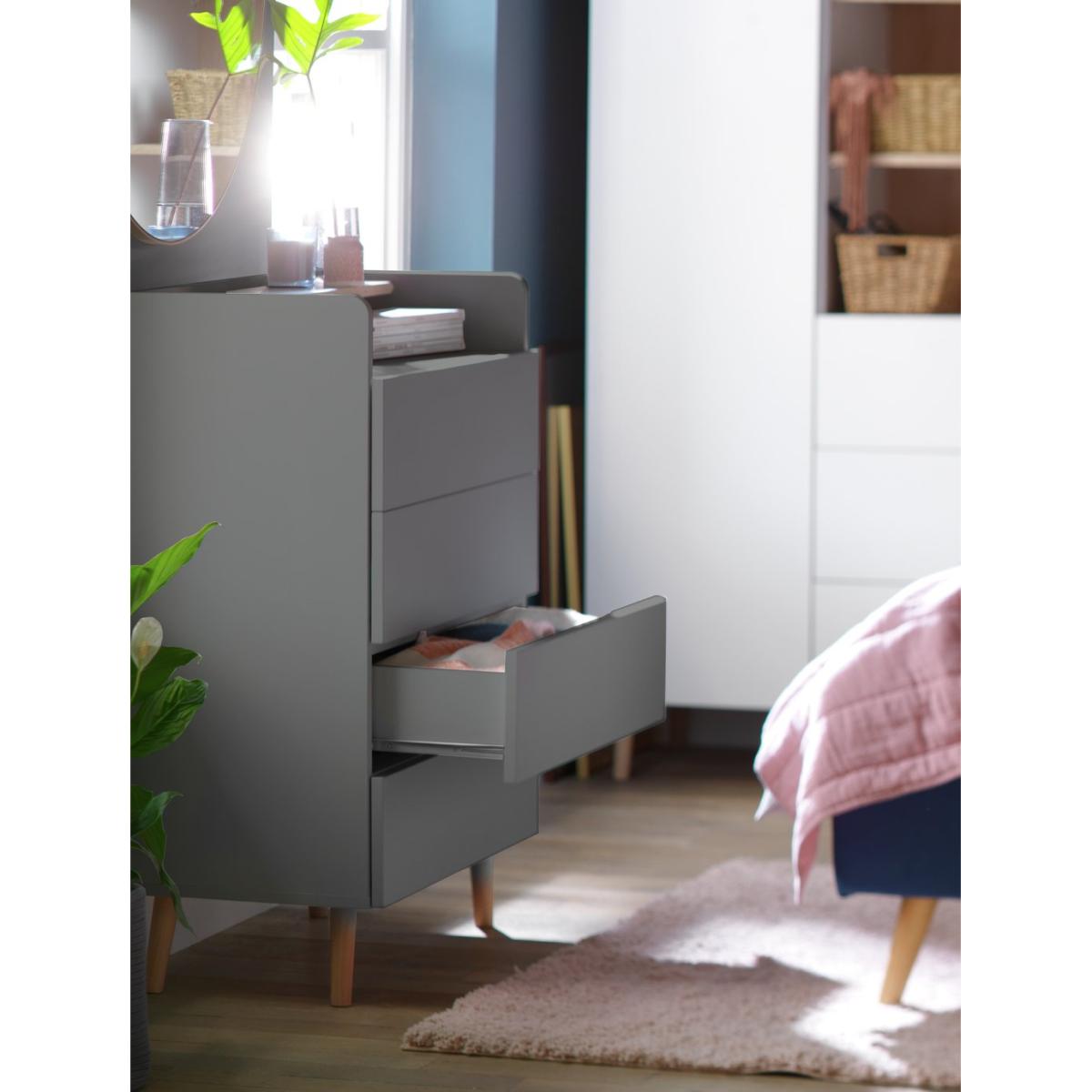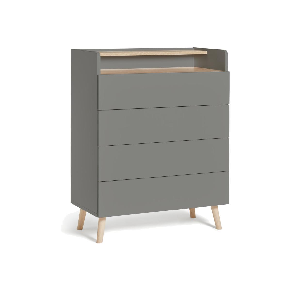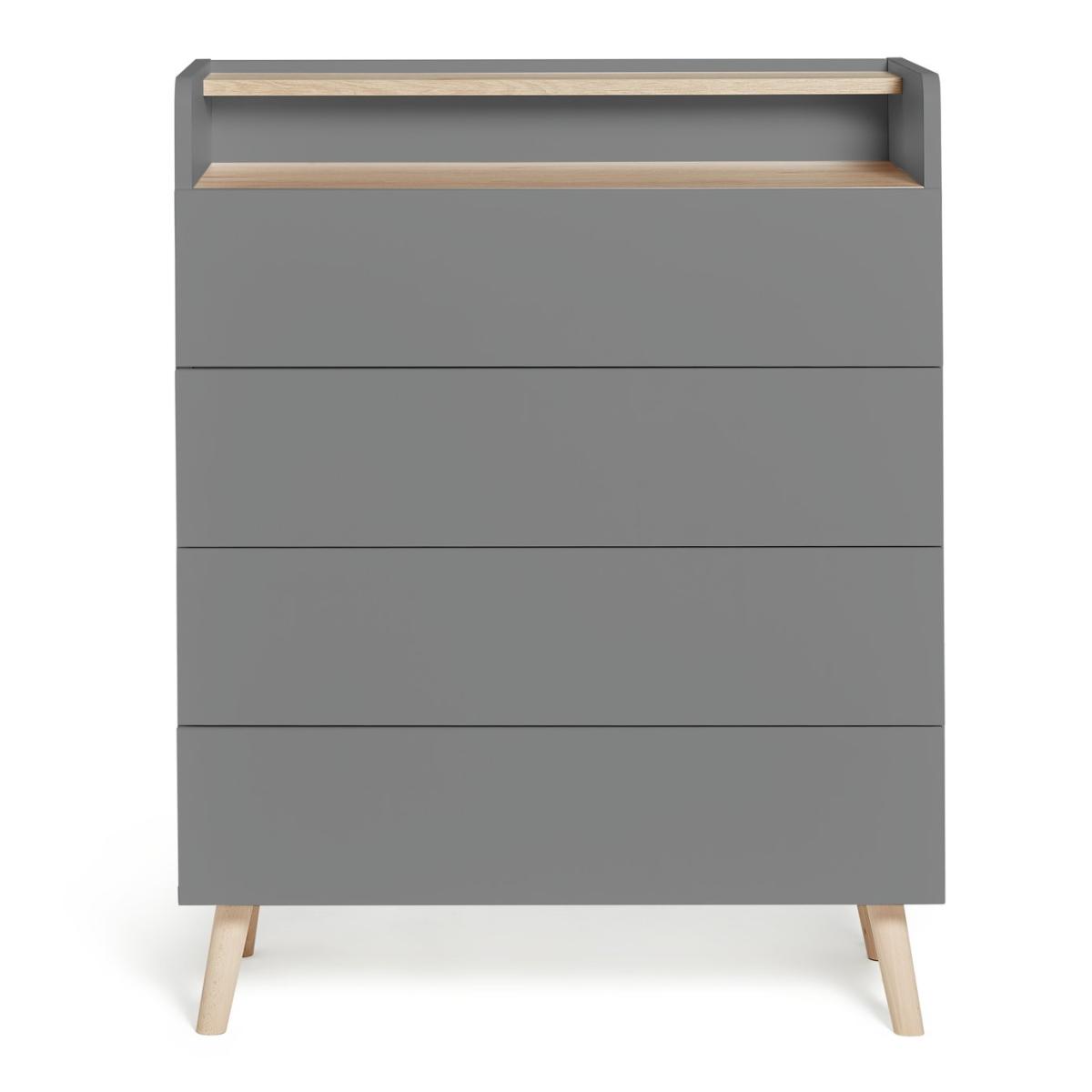 Clean lines and neutral tones. Very Scandinavian. Say hello to our grey chest of drawers where minimalist design meets maximum appeal. There are 4 easy glide handless drawers and a distinctive 2-tier top surface. All sitting pretty on natural wooden splayed legs. Fallen for the paired back Skandi style? You're in the right place, we've lots of pieces to make your heart race. Part of the Skandi collection. Made of particleboard and wood. 4 drawers with metal runners. Self-assembly - 2 people recommended. If this product is over 60cm high it must be securely attached to the wall to prevent overturning. Dimensions: Size H104, W79.9, D41.7cm. Internal drawer H12, W70.3, D31.2cm. Weight 45.98kg. Package Dimensions: Package 1 dimensions: H16.2, W43, D100,. Package 1 weight: 27.48kg. Package 2 dimensions: H9.6, W43, D93.2cm. Package 2 weight: 18.5kg. General information: We are excited to be welcoming some of our favourite HOME products into the Habitat range. Your product may arrive in Habitat or HOME packaging. Manufacturer's 1 year guarantee.