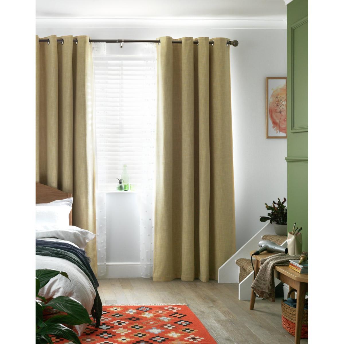 The best of both worlds. The Skandi linen-look curtains provide the look of lightweight linen with the advantage of a thermal, blackout lining. Ideal for blocking out glare and keeping the temperature just right, each panel measures 168cm by 229cm which means they're versatile for a range of rooms. In a pastel lemon-yellow shade, you can rely on this pair to add a subtle splash of colour, pairing beautifully with contemporary and traditional styles alike. Yellow Skandi Linen - Look Design. Silver Stainless teel Eyelets. Features. Blackout thermal. Made from 70% polyester and 30% viscose. Lined. Lining made from 100% polyester. Dimensions Size 168cm (66 inches) wide by 229cm (90 inches) drop. Dimensions provided include header tape. Width refers to one curtain panel before hanging. Depth of header tape: 2 inch/ 4cm. Eyelet diameter: 6cm. General information. Contains one pair of curtains. Number of eyelets per curtain: 8. Suitable for curtain poles. Curtain pole not included. Dry clean only. General Information: We are excited to be welcoming some of our favourite HOME products into the Habitat range. Your product may arrive in Habitat or HOME packaging. Manufacturer's 1 year guarantee.