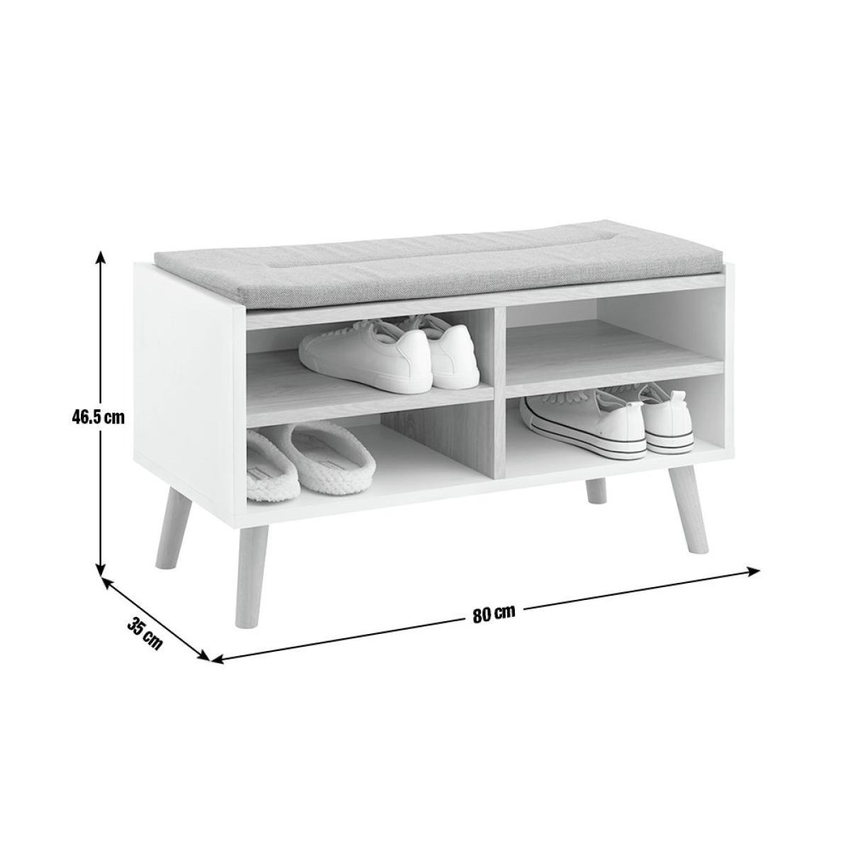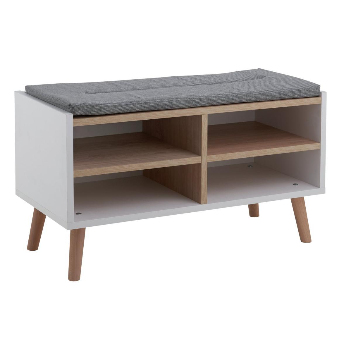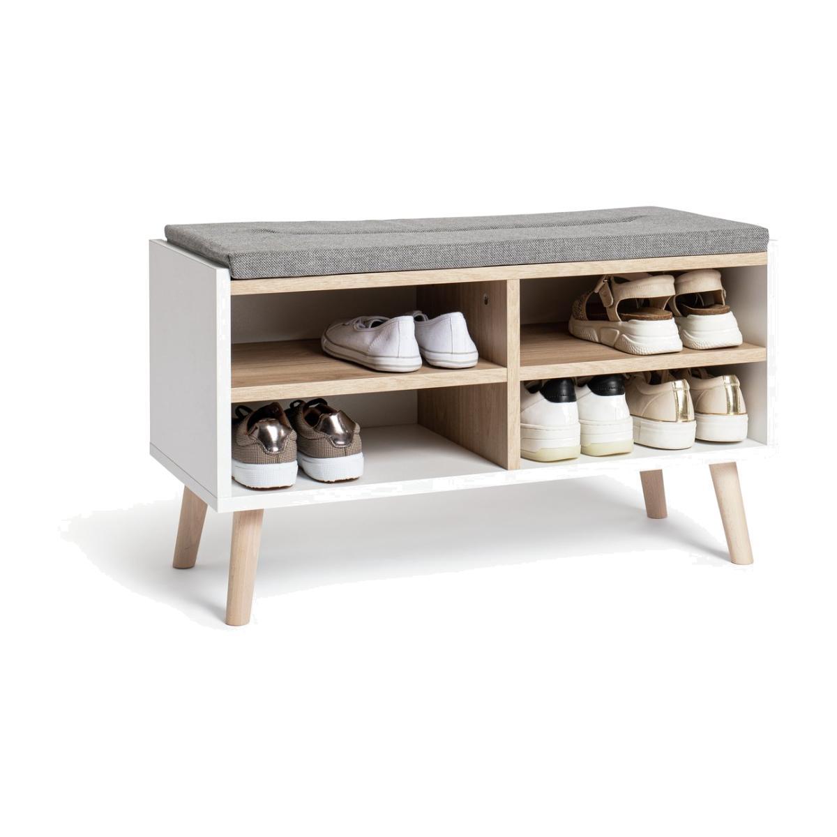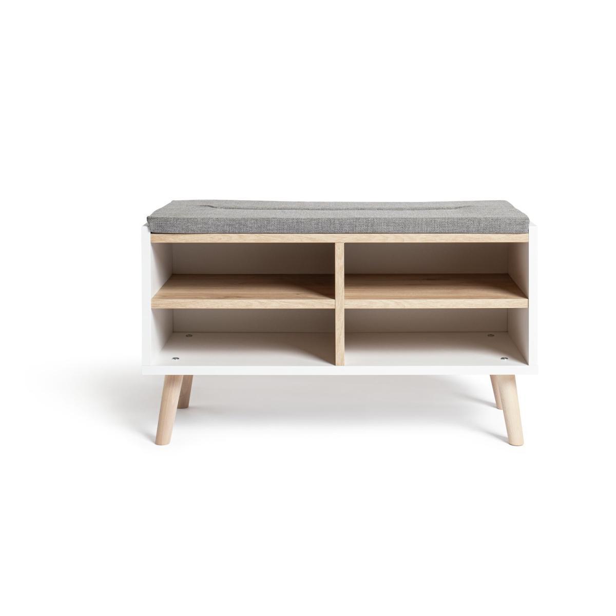 The perfect perch for putting on your shoes, the Skandi shoe storage bench is ideal for the hallway, bedroom or anywhere else you need a little more function and a whole lot of style. With clean lines, contrasting shades, elegant wooden legs and a comfy cushioned seat, practicality never looked so good. Part of the Skandi collection. Made from melamine. Size H46.5, W80, D35cm. Weight 15kg. Stores an average of 8 pairs of shoes. Maximum shoe size 9. FSC certified. Freestanding. Self-assembly. If this product is over 60cm high it must be securely attached to the wall to prevent overturning. General Information:We are excited to be welcoming some of our favourite HOME products into the Habitat range. Your product may arrive in Habitat or HOME packaging.