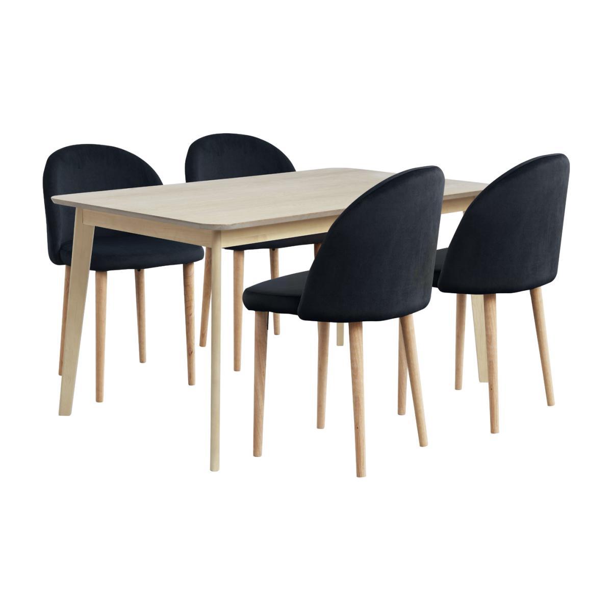 Fine dining, Skandi style. Our solid wood dining set serves up elegant Nordic simplicity. The pale wood brings a fresh laid back feel to the table. Sink back into the 4 padded black tub chairs, they're designed for comfort. Smart enough for special occasions? Certainly. Relaxed enough for everyday? Absolutely. So linger over lunch, make time for dessert. Enjoy the simple pleasures in life.
