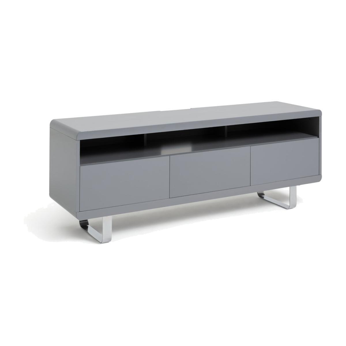 A contemporary cool collection. Habitat Sleigh has a high-gloss grey finish, for a lounge that looks smart and fresh. This effortlessly stylish 3 door, 1 drawer sideboard is raised from the ground on stand-out, polished sleigh legs, so it is sure to modernise your home. Smoothly does it, the Sleigh boasts rounded edges and, of course, the sleekness and reflective sheen of the high-gloss. The full-length open shelf will house your media devices, whilst the soft-closing doors and drawer are perfect for hiding away techy clutter. We've given the Sleigh a streamlined design, so there's no handles - you simply push to open the doors and drawer. So long as your telly isn't wider than 65 inches, you can perch it on top of this striking unit. Part of the Sleigh collection. Size H 57, W 150, D 40cm. Weight 36kg. 1 drawer with metal runners. 1 shelf. 2 doors. 1 media storage section. Largest height of media equipment sections 12cm. Easy cable access. Suitable for screen sizes up to 55in. Maximum weight of TV 50kg. Self-assembly - 2 people recommended. General information:We are excited to be welcoming some of our favourite HOME products into the Habitat range. Your product may arrive in Habitat or HOME packaging.
