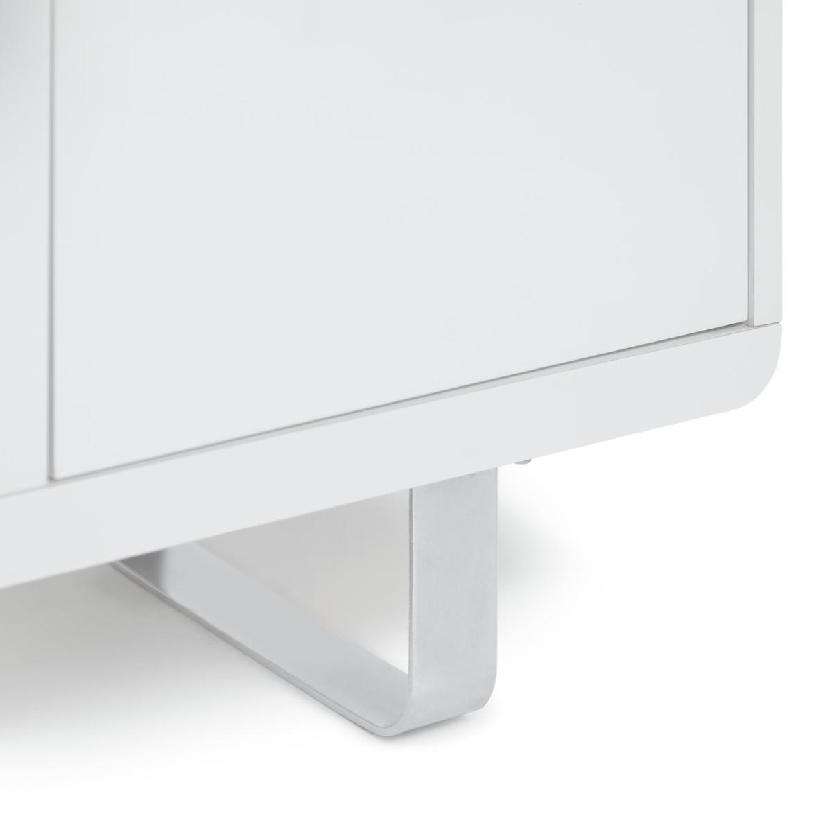 A contemporary cool collection. Habitat Sleigh has a high-gloss grey finish, for a lounge that looks smart and fresh. This effortlessly stylish sideboard is raised from the ground on stand-out, polished sleigh legs, so it is sure to modernise your home. Smoothly does it, the Sleigh boasts rounded edges and, of course, the sleekness and reflective sheen of the high-gloss.