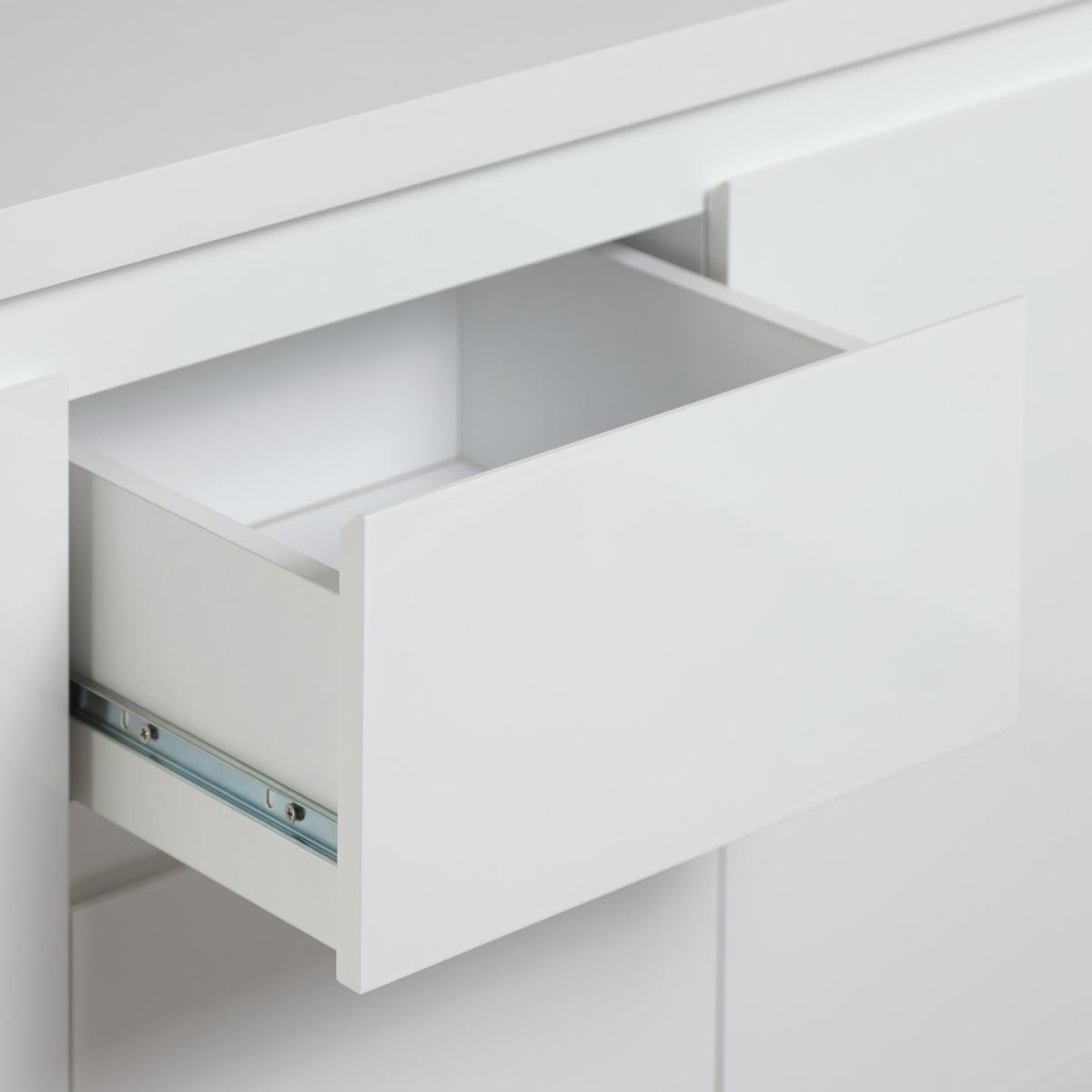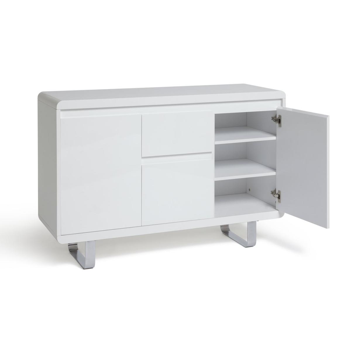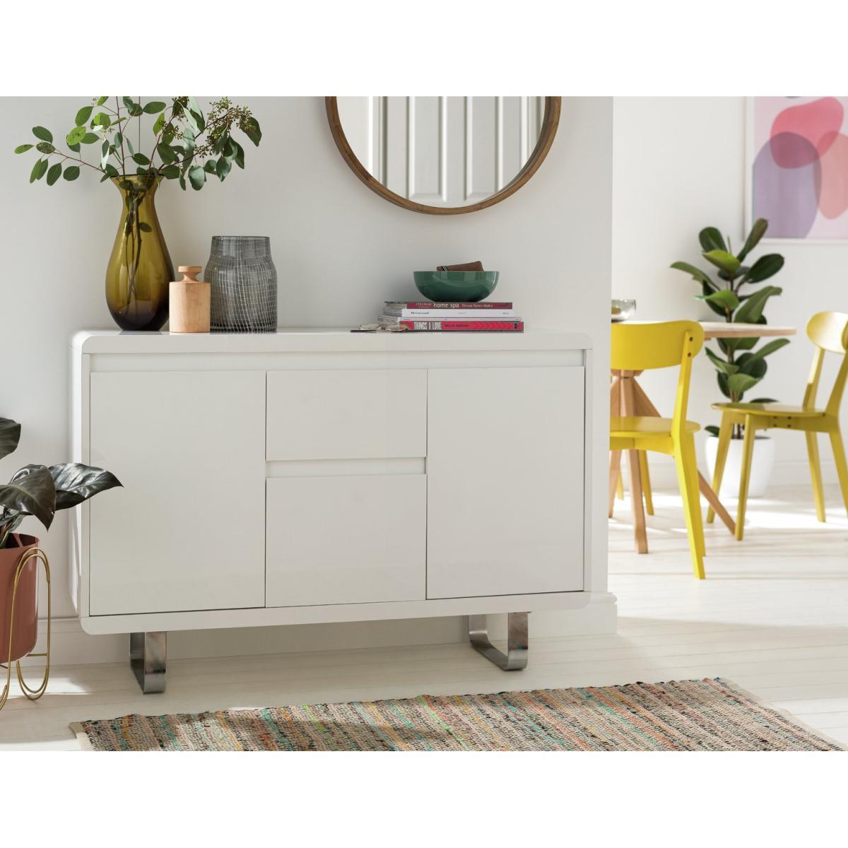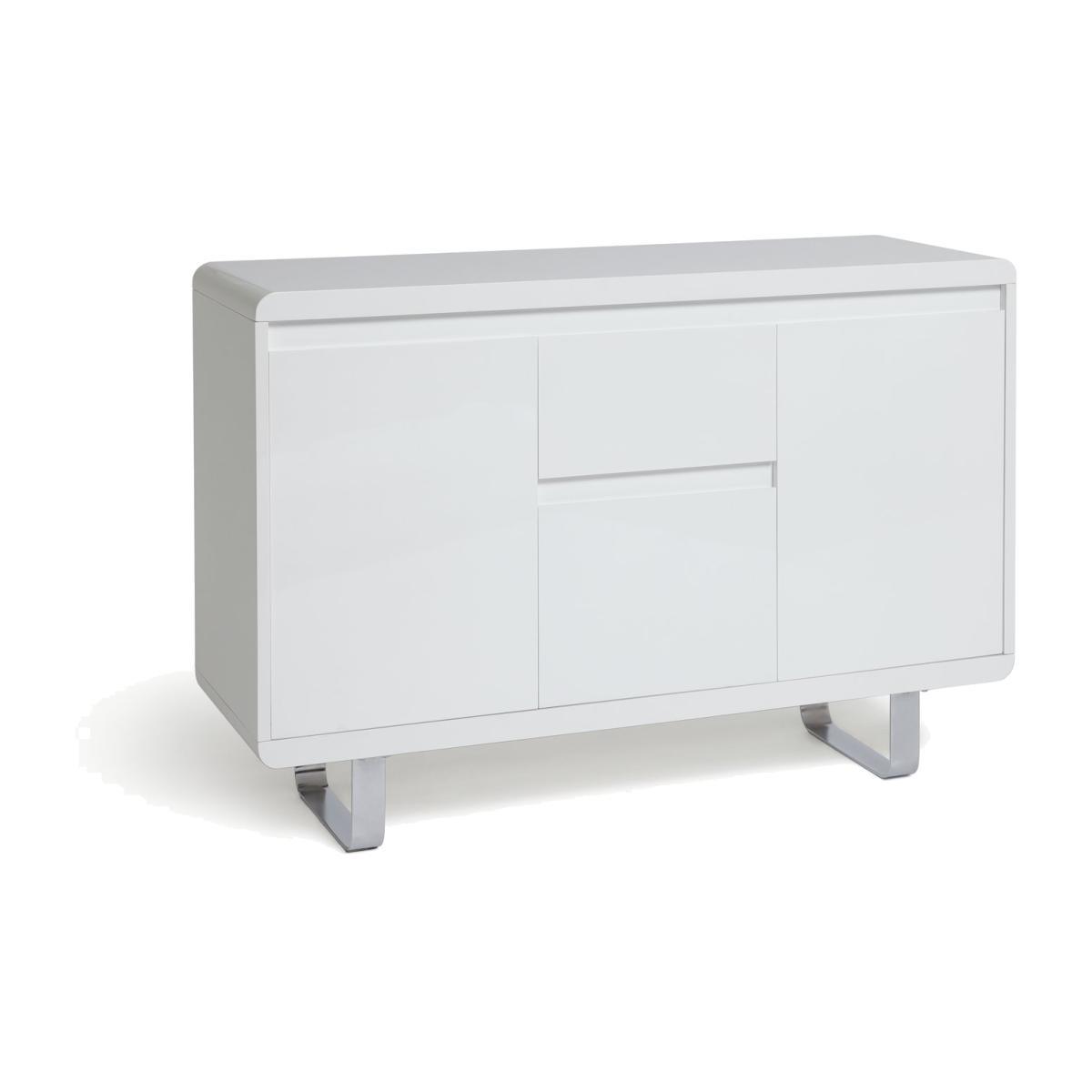 A contemporary cool collection. Habitat Sleigh has a high-gloss grey finish, for a lounge that looks smart and fresh. This effortlessly stylish 3 door, 1 drawer sideboard is raised from the ground on stand-out, polished sleigh legs, so it is sure to modernise your home. Smoothly does it, the Sleigh boasts rounded edges and, of course, the sleekness and reflective sheen of the high-gloss.