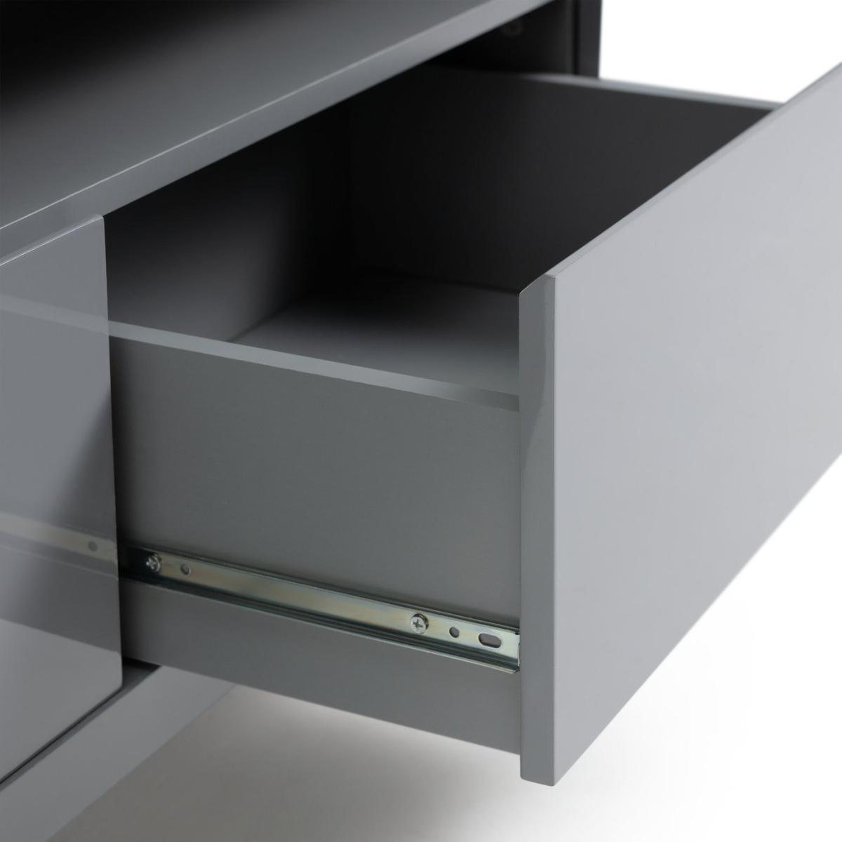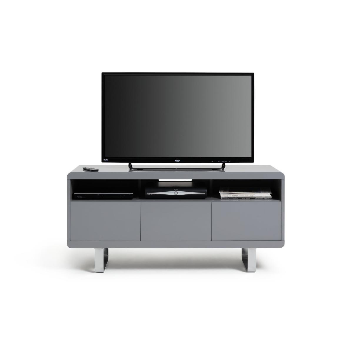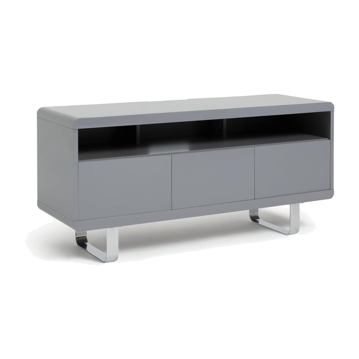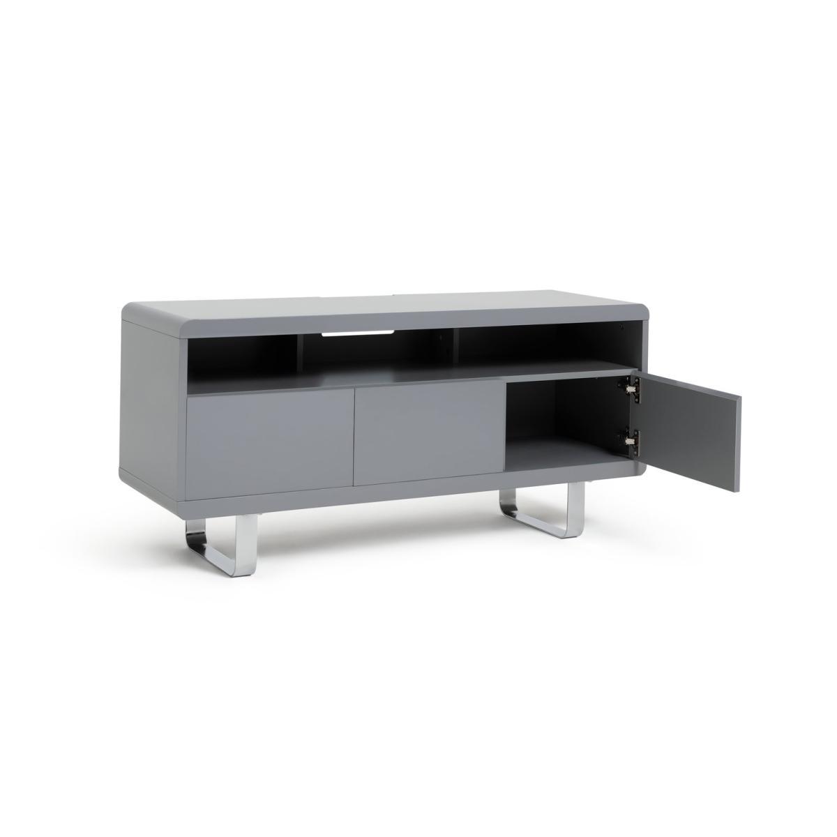 A contemporary cool collection. Habitat Sleigh has a high-gloss grey finish, for a lounge that looks smart and fresh. This effortlessly stylish TV unit is raised from the ground on stand-out, polished sleigh legs, so it is sure to modernise your home. Smoothly does it, the Sleigh boasts rounded edges and, of course, the sleekness and reflective sheen of the high-gloss.