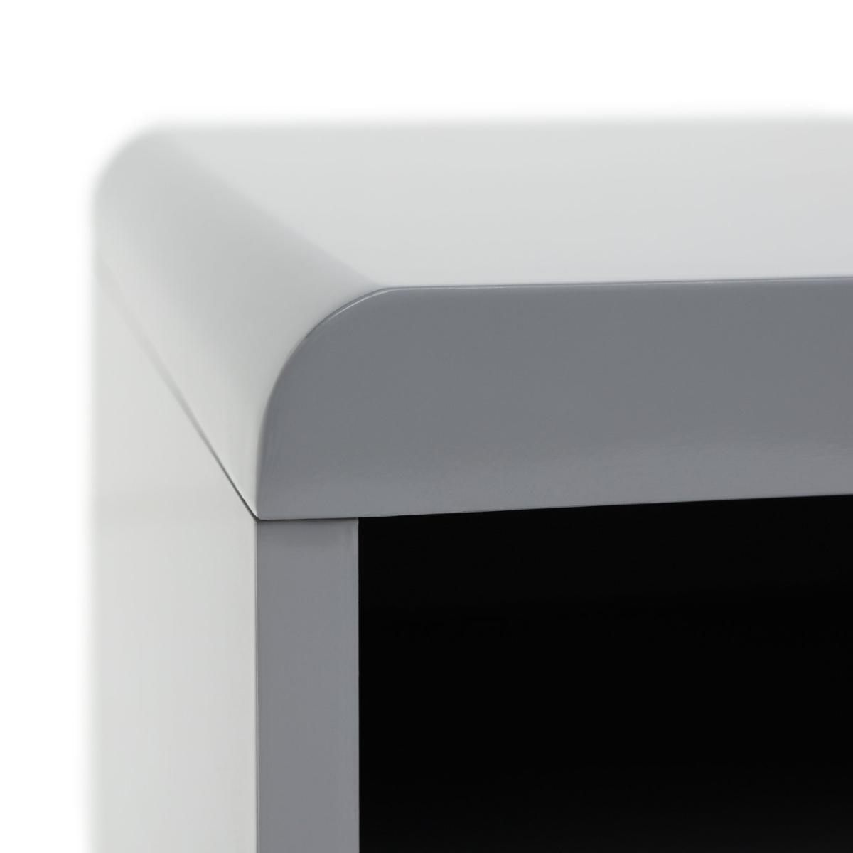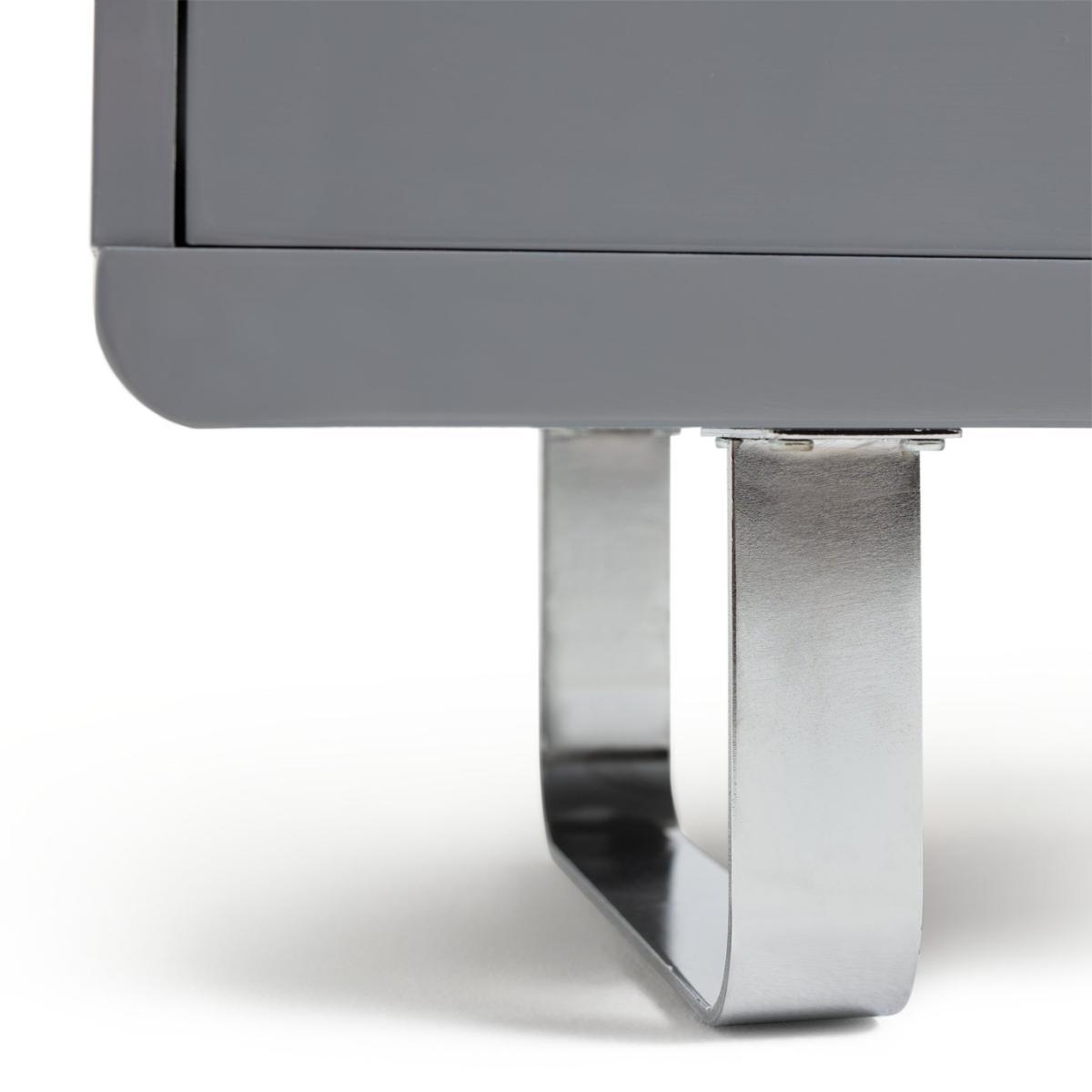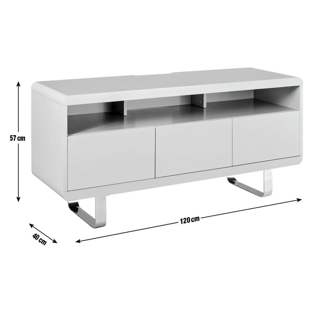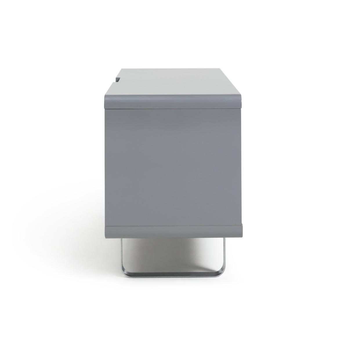 A contemporary cool collection. Habitat Sleigh has a high-gloss grey finish, for a lounge that looks smart and fresh. This effortlessly stylish TV unit is raised from the ground on stand-out, polished sleigh legs, so it is sure to modernise your home. Smoothly does it, the Sleigh boasts rounded edges and, of course, the sleekness and reflective sheen of the high-gloss.
