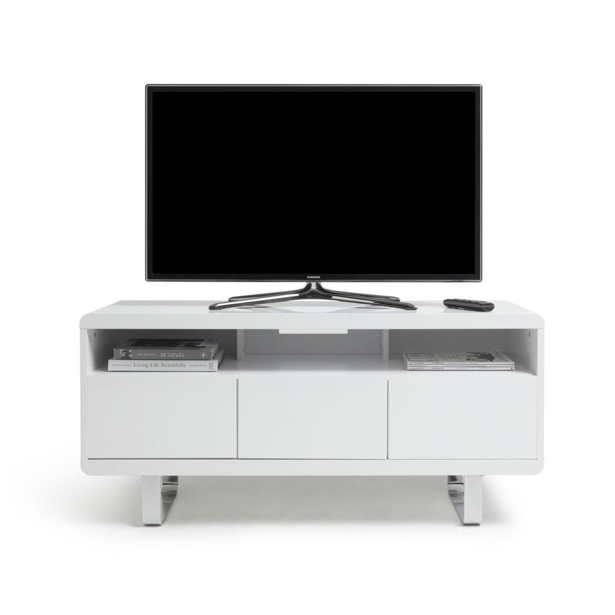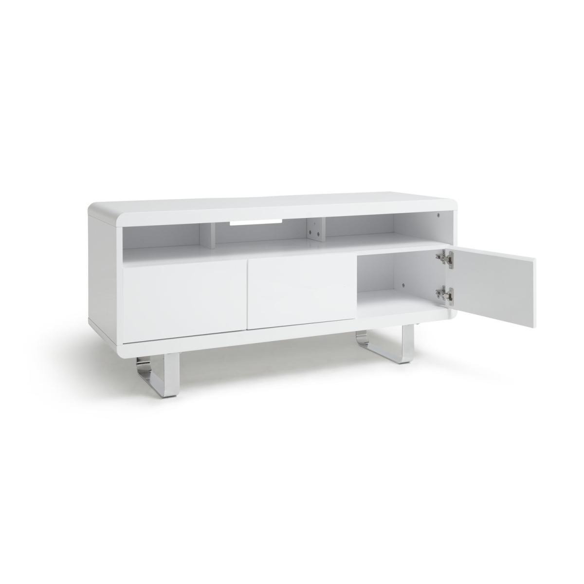 A contemporary cool collection. Habitat Sleigh has a high-gloss grey finish, for a lounge that looks smart and fresh. This effortlessly stylish TV unit is raised from the ground on stand-out, polished sleigh legs, so it is sure to modernise your home. Smoothly does it, the Sleigh boasts rounded edges and, of course, the sleekness and reflective sheen of the high-gloss.