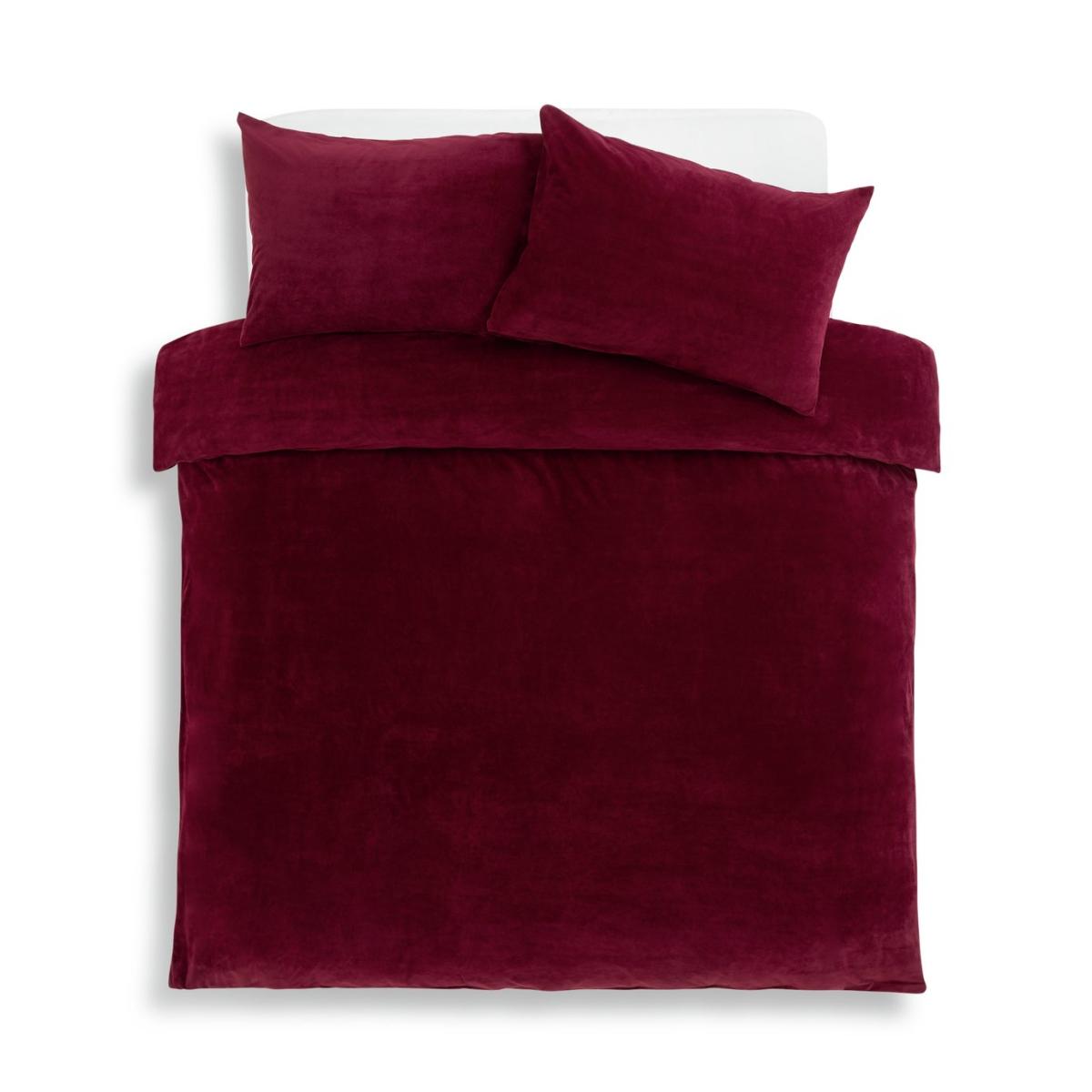 Introduce this luxurious bedding set to your bedroom. Designed in smooth fleece it's warm and chic. This rich berry-toned duvet set is a comfortable choice. This item carries the STANDARD 100 by OEKO-TEX logo, which means you can be certain that every component has been tested for harmful substances and is therefore harmless to human health. Finish: fleece. 100% polyester. 100% polyester. Set includes 1 duvet cover and 2 pillowcases. Bed size: super king. Length 220cm, Width 260cm. Buttons for fastening. Standard pillowcase (s). Pillow case length 70cm, Width 50cm. Machine washable. Suitable for tumble drying.