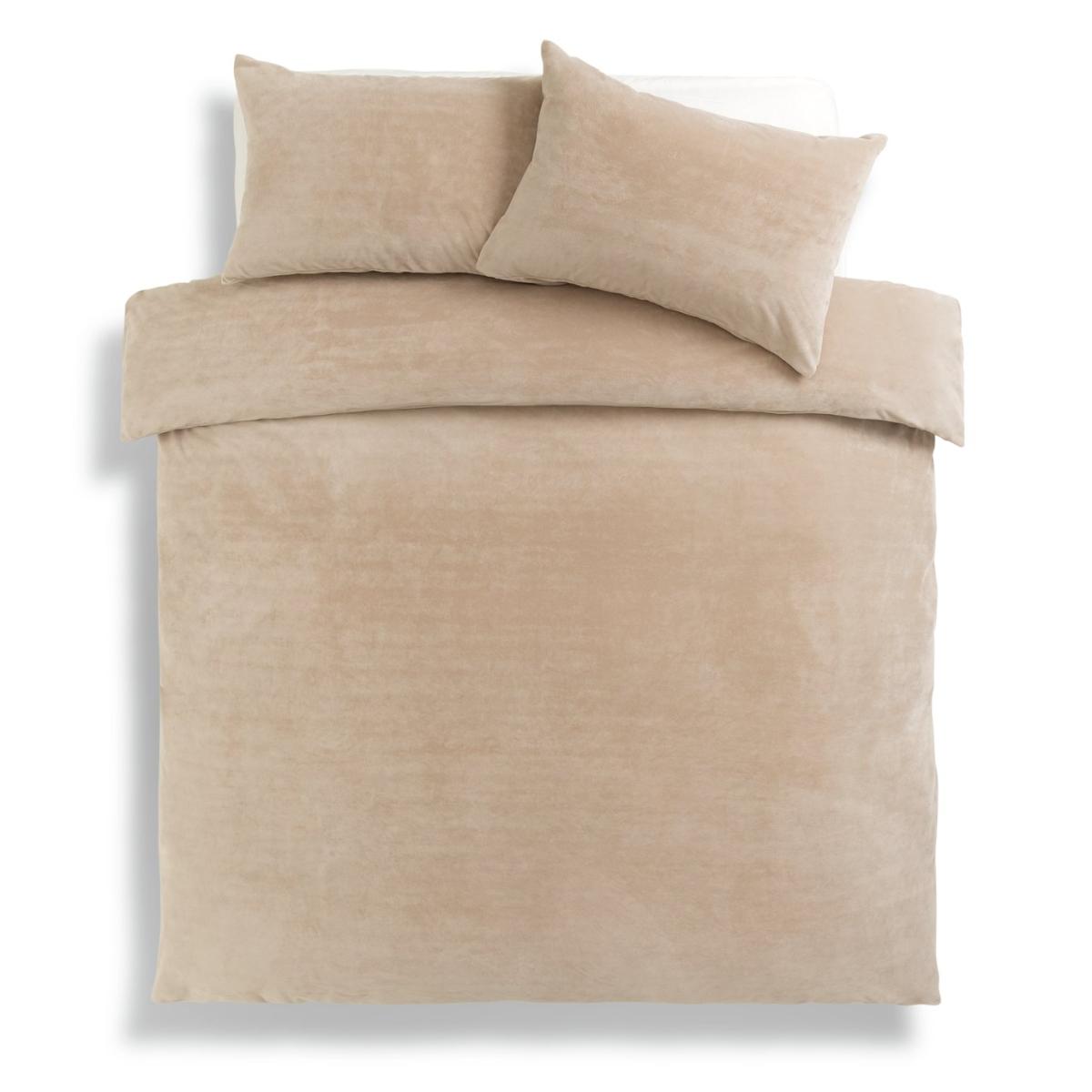 Introduce this luxurious bedding set to your bedroom. Designed in smooth fleece it's soothing and chic. This champagne-toned duvet set is a calming, comfortable choice. This item carries the STANDARD 100 by OEKO-TEX logo, which means you can be certain that every component has been tested for harmful substances and is therefore harmless to human health. Finish: fleece. 100% polyester. 100% polyester. Set includes 1 duvet cover and 2 pillowcases. Bed size: king size. Length 220cm, Width 230cm. Buttons for fastening. Standard pillowcase (s). Pillow case length 70cm, Width 50cm. Machine washable. Suitable for tumble drying.