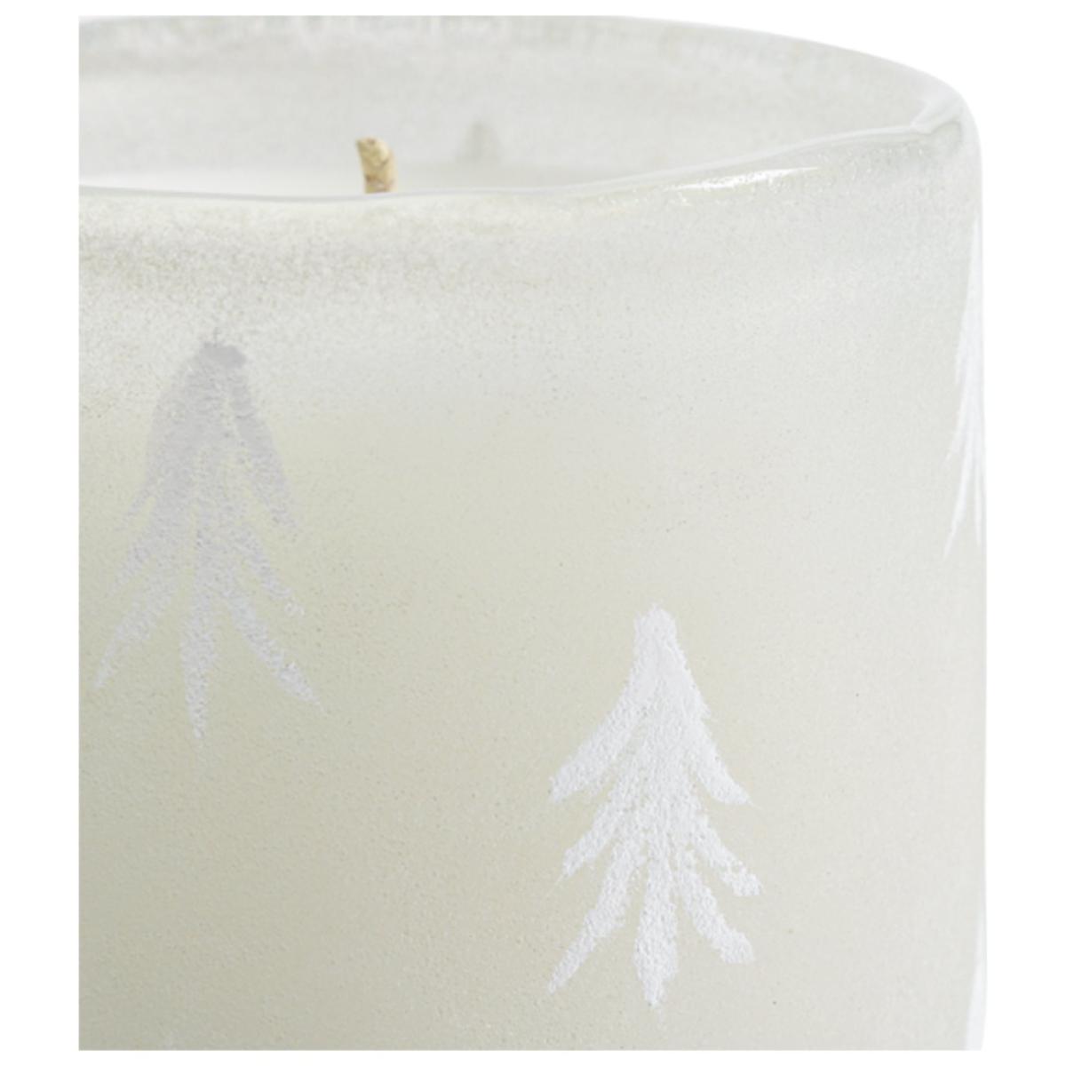 Welcome the spirit of winter with our fir and balsam frosted scented candle. Notes of clove mingle with pine and maple on a cedar base. The result is a warm, rich woody blend with a hint of sweetness. Fir Balsam scent. Paraffin wax. Approximate burn time 32 hours. Size H8, W7.5, D7.7cm.