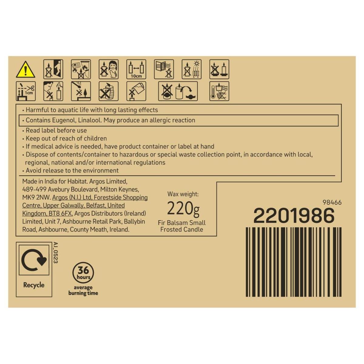 Habitat Small Frosted Scented Candle - Fir Balsam