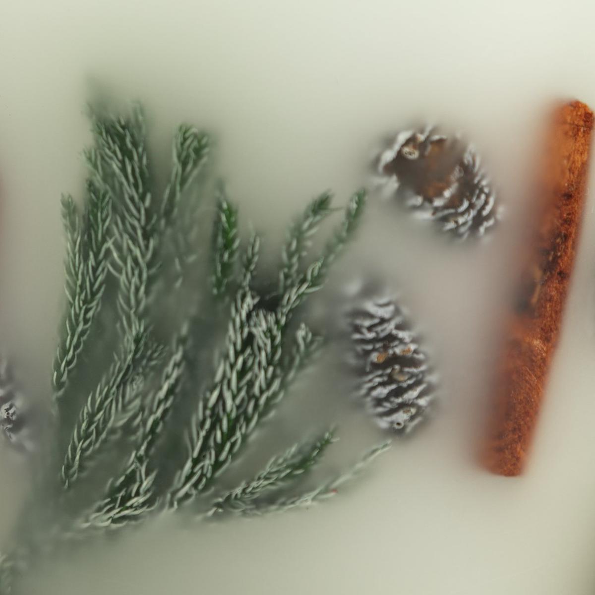 Can you smell the fresh pine? Light up this pretty single wick candle to feel like you're in a winter wonderland. Crisp winter air imbued with raw green sweet natural notes. Refreshing and laced with just a touch of cinnamon. Delicious. Even better the organic botanicals of pine, cinnamon and fir cones are all on display through the pale creamy wax. Beautiful. This candle is set to take centre stage on any table. 75 hours of burn time promise many aromatic moments. Marvelous as a gift, marvelous for me time. Frosted Cedar scent. Soy wax. Approximate burn time 75 hours. Size H11.4, W10.1, D10.1cm. Diameter 10.1cm.