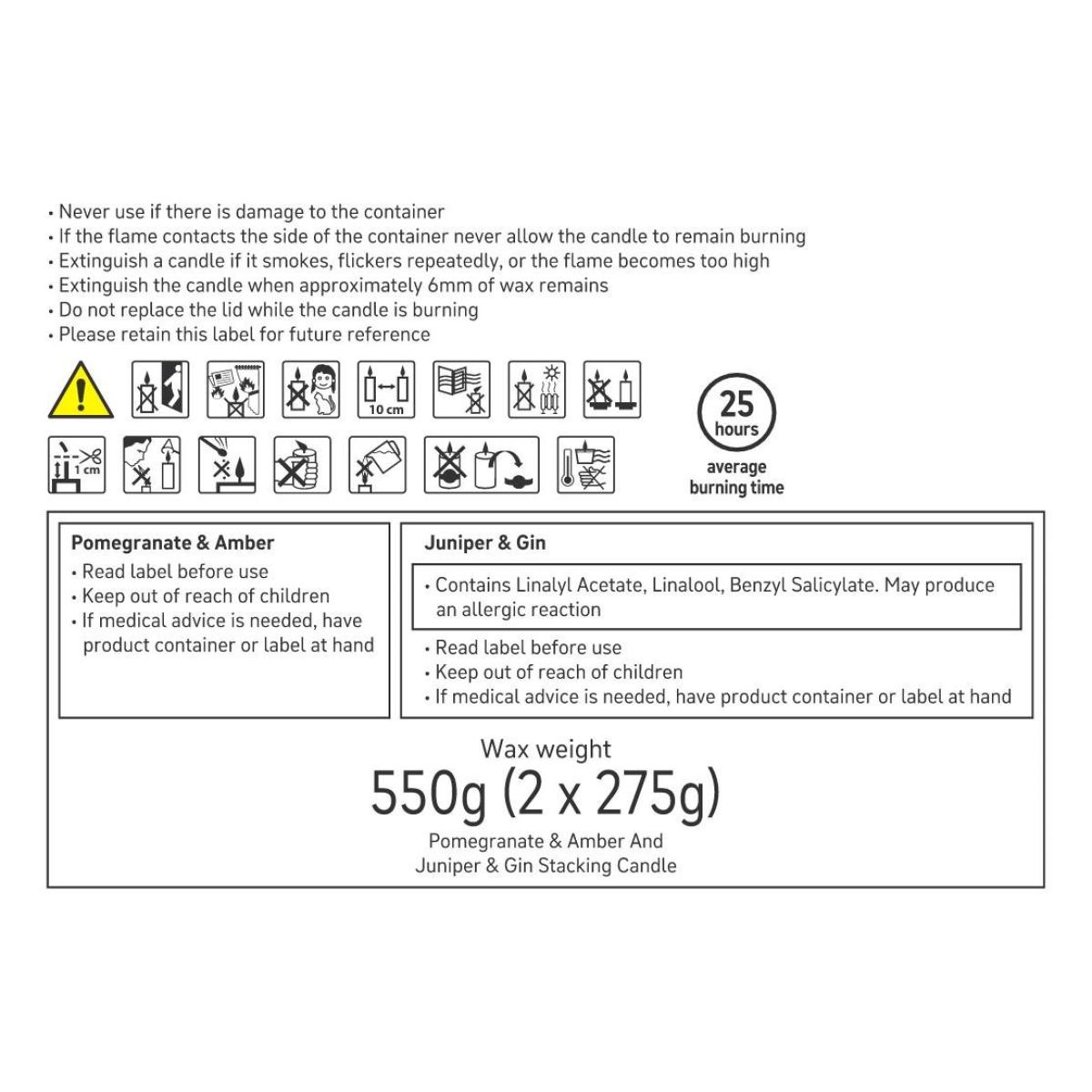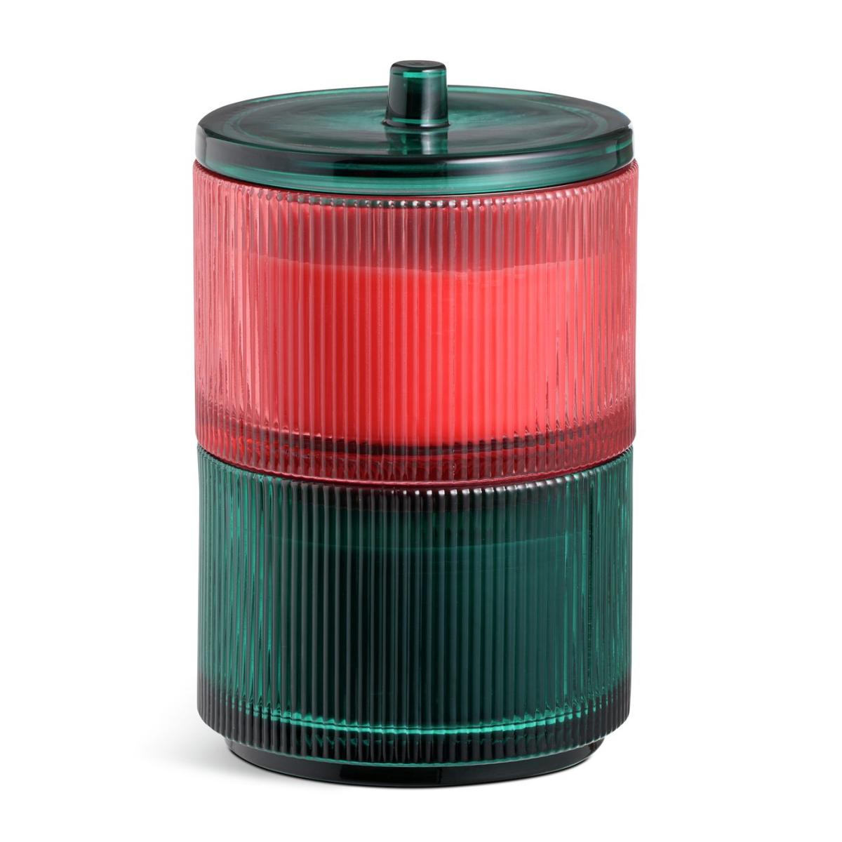 What's better than one enchanting fragrance? Answer, two. Stacked on top of each other, this pair of red and green scented candles have a colourful festive feel. Crafted from ribbed glass they make a jolly attractive gift. Plus, each candle has its own aromatic personality. Uplifting pomegranate and amber and refreshing juniper and gin. A doubly delightful decorative way to perfume a room. Pomegranate & Amber and Juniper & Gin scent. Paraffin wax. Approximate burn time 25 hours. Size H8.5, W8.5, D8.5cm. Diameter 8.5cm.