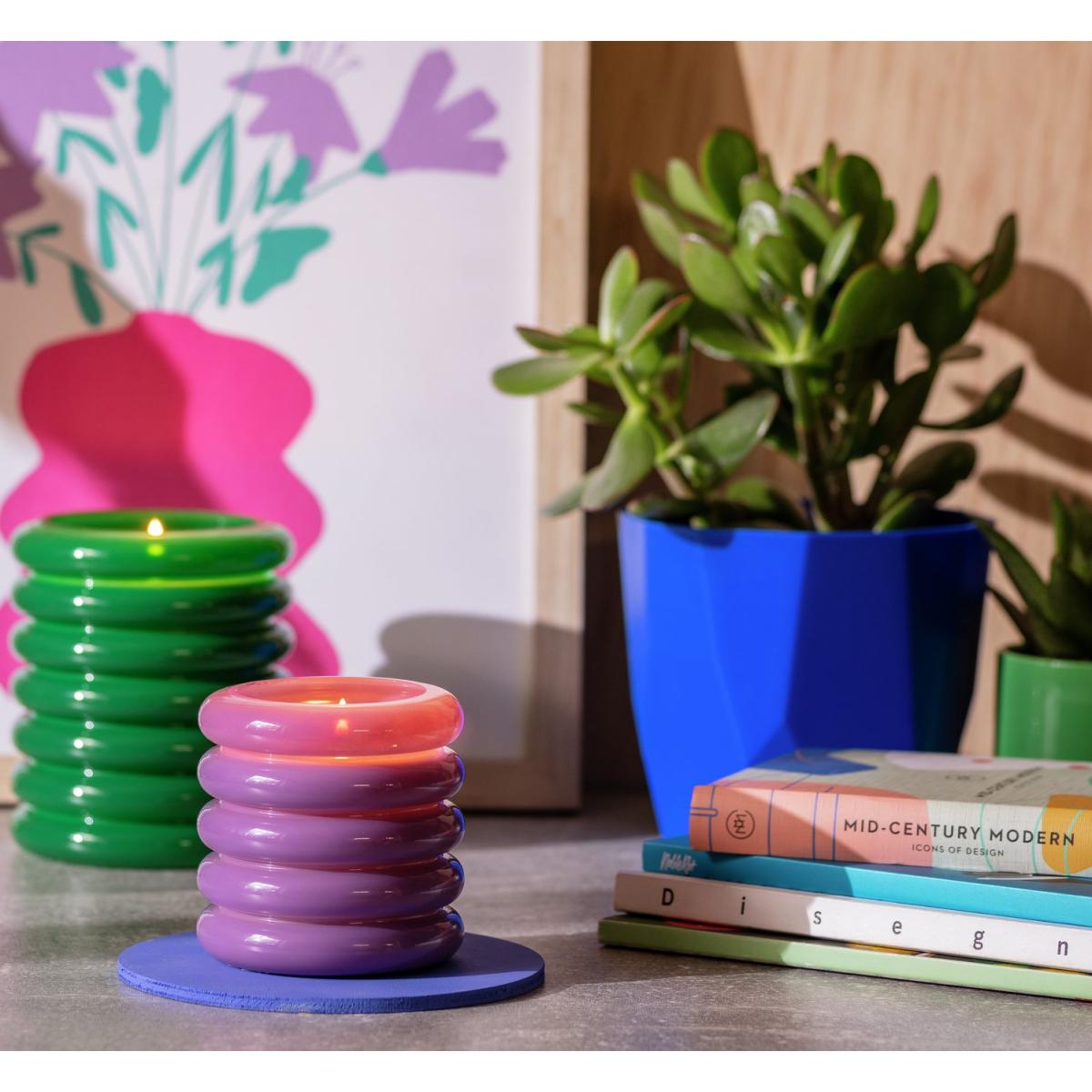 I love this candle for its modern, playful design and refreshing scent combo. The small size makes it versatile-it works well on shelves, coffee tables, or sideboards without taking up too much space. Its bold, pastel hue adds a subtle pop of colour to neutral or monochrome interiors, while the rounded, layered shape lends a contemporary touch. Practical styling tips include grouping it with candles of varying heights, or pairing it with chic vases and books for an everyday tablescape. It’s a great finishing piece that brings warmth and a hint of colour, especially in minimalist or modern interiors.