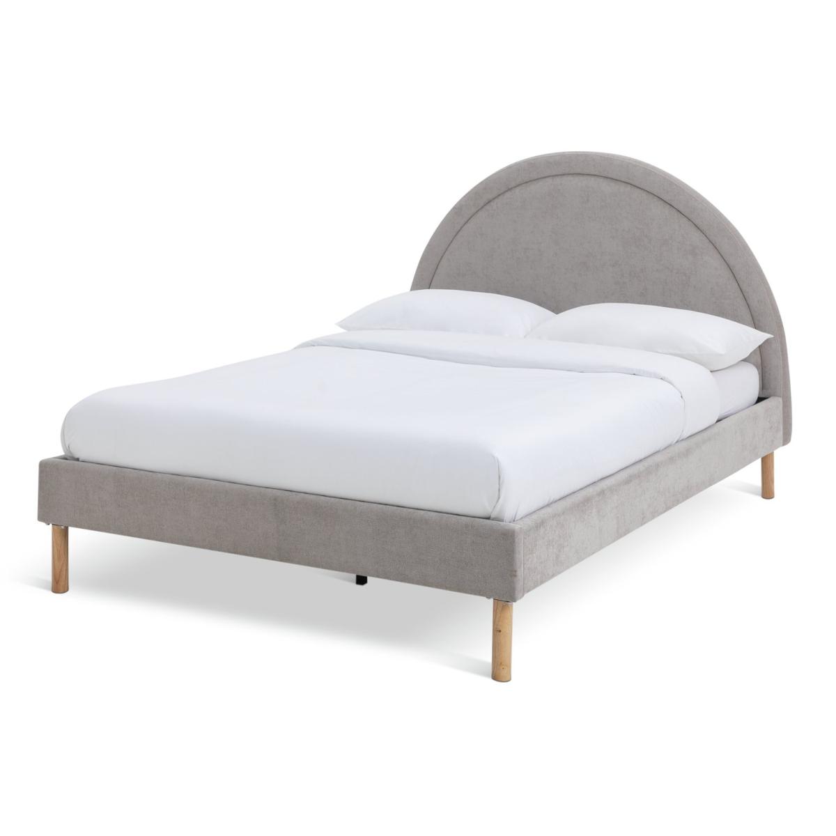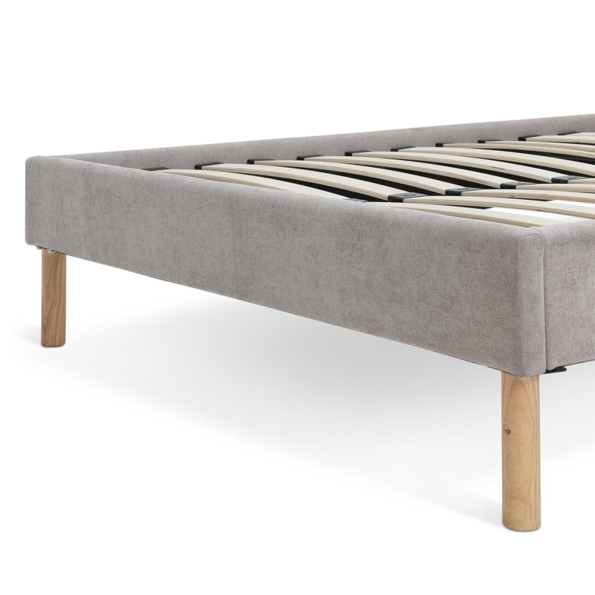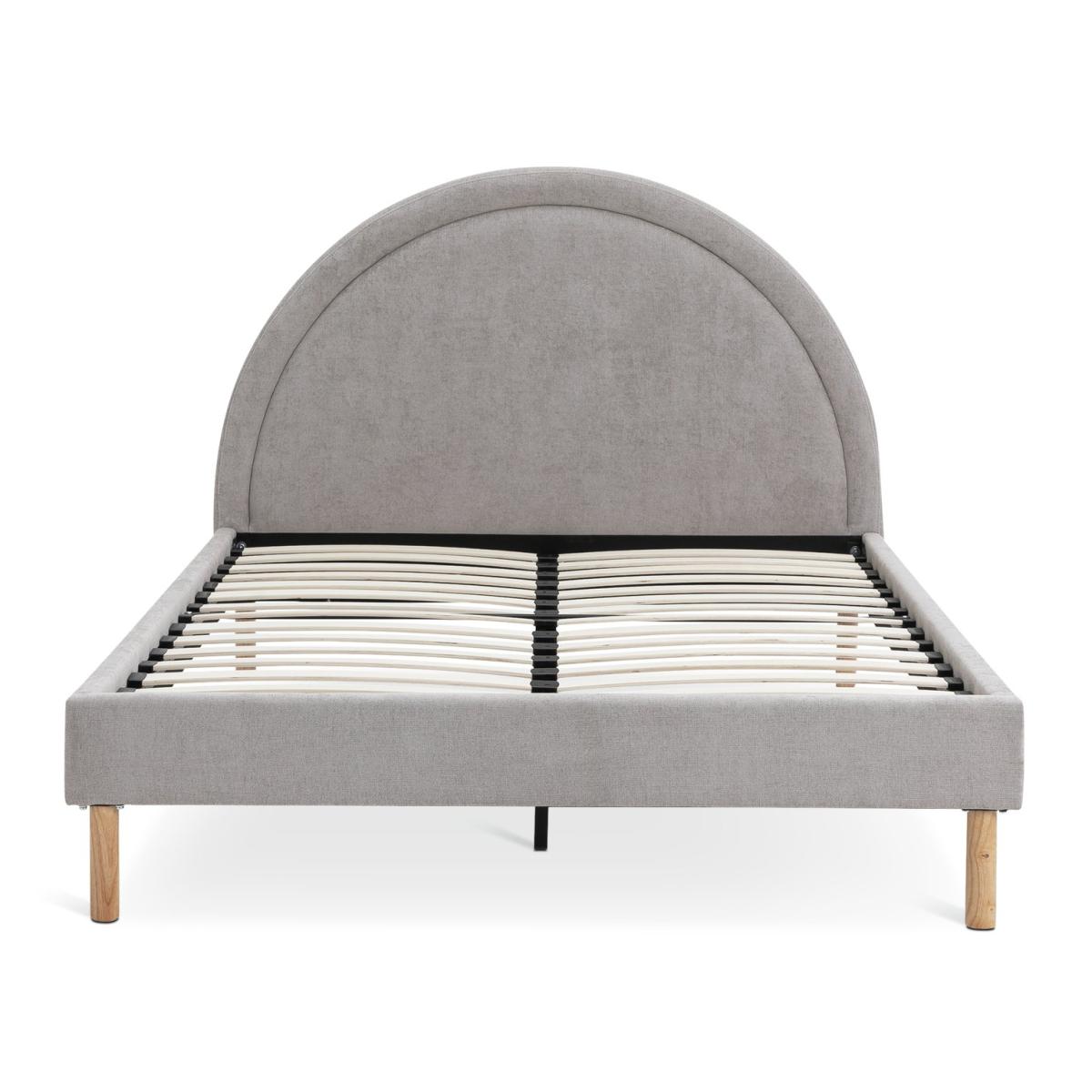 Dreamy curves. Our soft grey fabric bed frame cocoons you in comfort. The gently arched headboard hugs your back, while the slatted base keeps things cool and supportive. Solid wooden legs give it a sleek, modern edge. Sleep soundly. Part of the Sol collection. Upholstered frame. Chenille fabric - 100% polyester. Wooden feet. Base with sprung wooden slats. Size W160, L216, H114cm. Height to top of siderail 30cm. 18cm clearance between floor and underside of bed. Weight 36kg. Total maximum user weight 220kg. Self-assembly - 2 people recommended. Package Dimensions: Package 1 dimensions: H11, W165, D112.5cm. Package 1 weight: 25kg. Package 2 dimensions: H17, W206, D22cm. Package 2 weight: 17kg. General Information: Manufacturer's 1 year guarantee. FSC certified meaning the materials used for this product are responsibly sourced.
