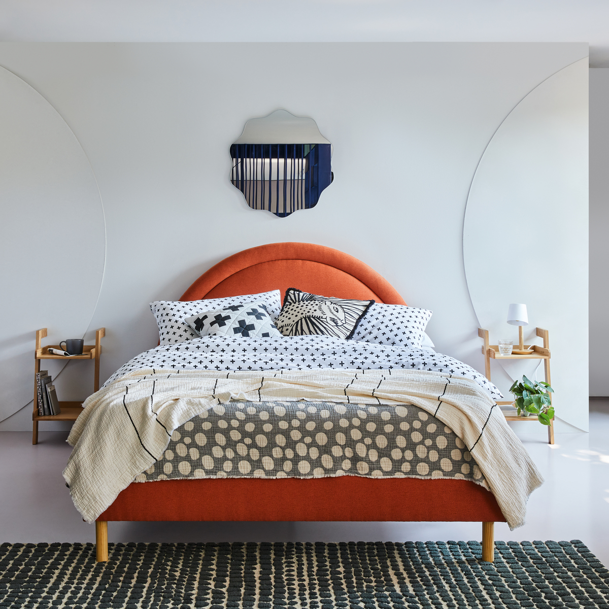 Featuring an upholstered soft curved headboard that's padded for extra comfort, it's finished with a wooden slatted base that extends the lifetime and comfort of your mattress and supported by minimalist oak legs for a sleek finish. Created in the Habitat designs studio, Sol's versatile design and durable finish will last the test of time. Part of the Sol Sunrise collection. Base with wooden slats. Size W148, L207, H115.5cm. Self-assembly - 2 people recommended. General Information:Manufacturer's 1 year guarantee.