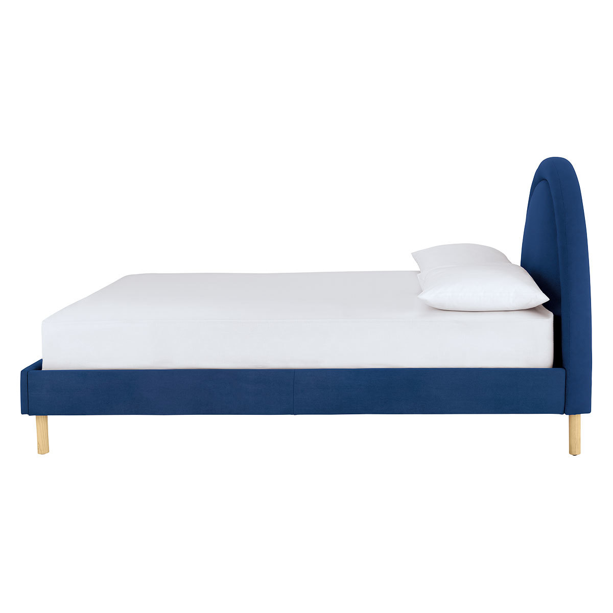 Featuring an upholstered soft curved headboard that's padded for extra comfort, it's finished with a wooden slatted base that extends the lifetime and comfort of your mattress and supported by minimalist oak legs for a sleek finish.