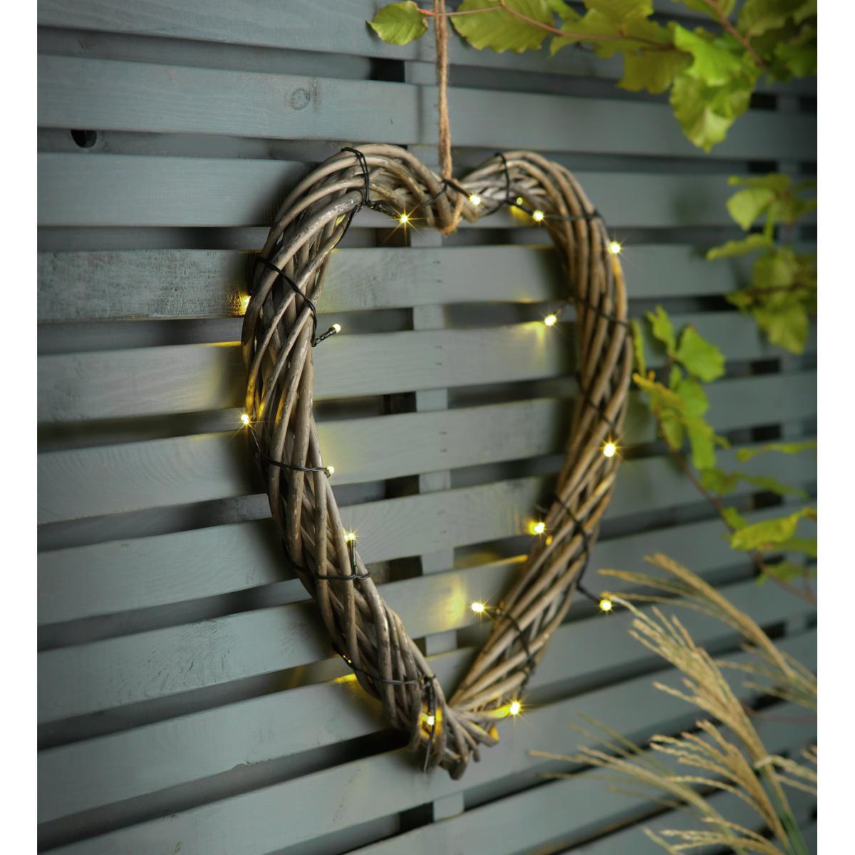 Brighten up your garden wall in the summer with this lovely rattan heart shpaed wall light. 20 solar powered LED lights give a stunning effect and requires no wiring or battery changing! Just pop it somewhere it can soak up the sun and enjoy.