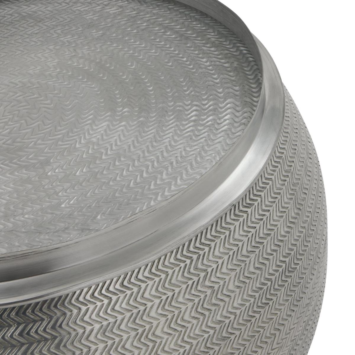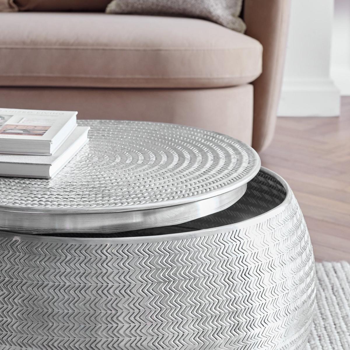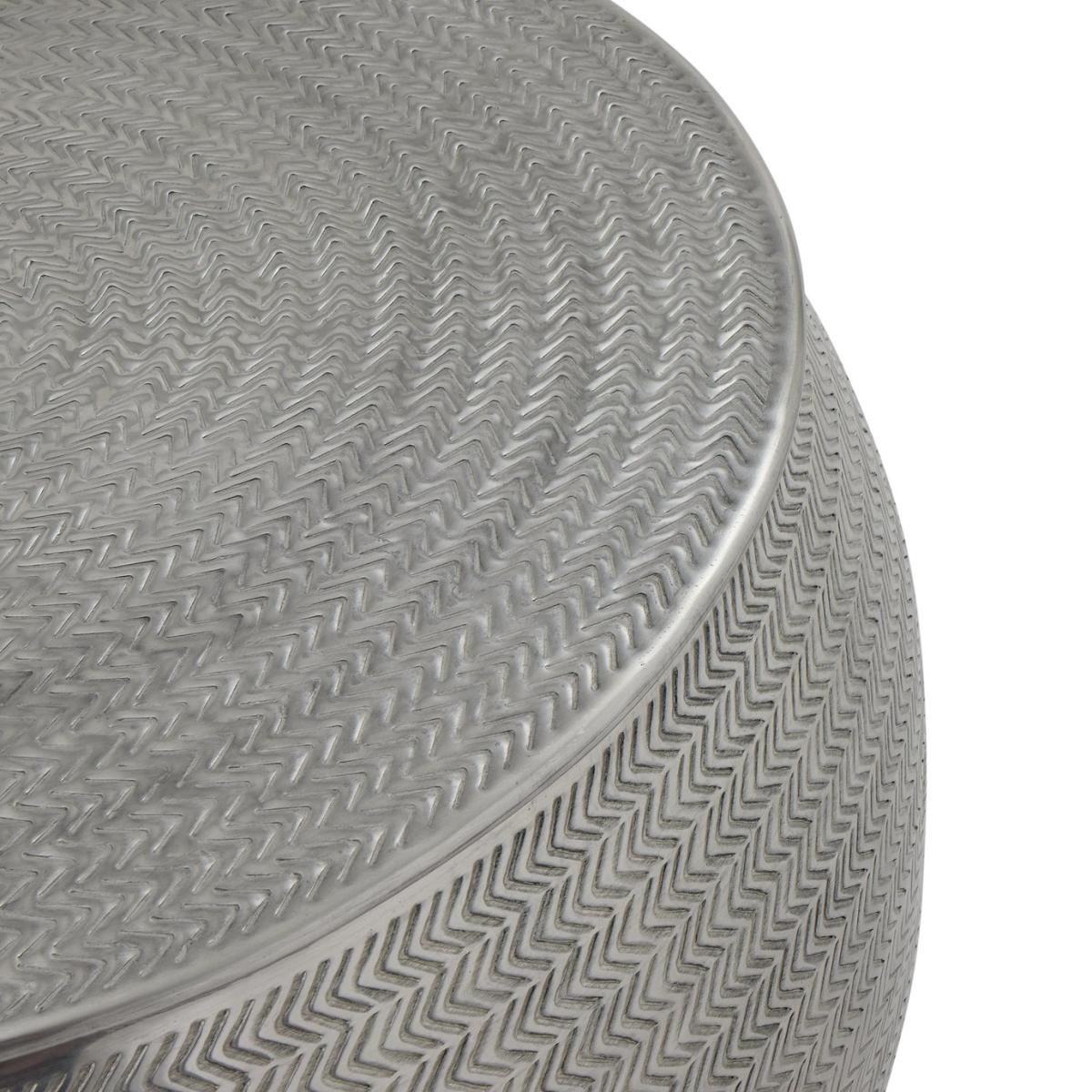 This coffee table is a perfect blend of style and functionality, crafted from high-quality metal for durability and a silver, timeless look. Its compact design makes it ideal for placing beside a sofa, bed, or chair, offering a convenient surface for lamps, drinks, books, or decorative items. The sturdy construction ensures long-lasting use, while the warm, silver finish adds an elegant touch to any room. This metal coffee table is a versatile and practical addition to your home. Coffee Table. Part of the Sona collection. Size H 37, W 76, D 76cm. Diameter 76 cm. Made from aluminium. Weight 8.64kg. Maximum load weight 20kg. Package Dimensions: Package 1 dimensions: H45, W80, D80cm. Package 1 weight: 14.3kg. General information: Manufacturer's 1 year guarantee.