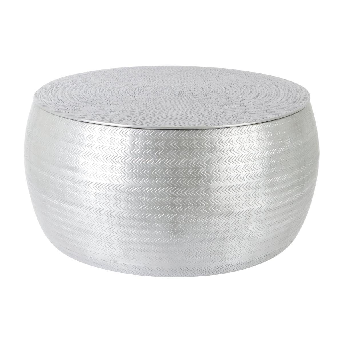 Add some modern, souk chic to your living room with this hand-etched storage coffee table. A striking design, it's made from hammered aluminium with a lustrous silvered finish. It's pure luxe on the outside with smart storage on the inside. What a clever space saving combo. Lid off and you've room to stash away magazines, TV remotes and everyday clutter. Lid on and, voila! An ultra glamourous table for drinks and nibbles.