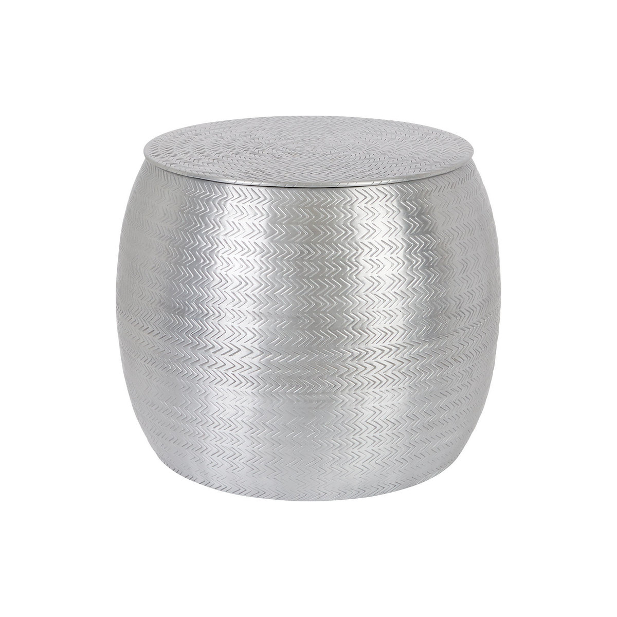 Offering form and function in equal measures, the Sona silver storage aluminium side table will take pride of place in your living room or bedroom. Featuring a statement hand etched design, this aluminium side table provides ample space for drinks, remote controls and a lamp. The addition of a removable lid for storage provides a great hiding place for throws and other bits you need but want to keep out of sight. Due to the nature of the design, each table is subtly unique. Part of the Sona range, the table is also available in copper and gold and as a coffee table.