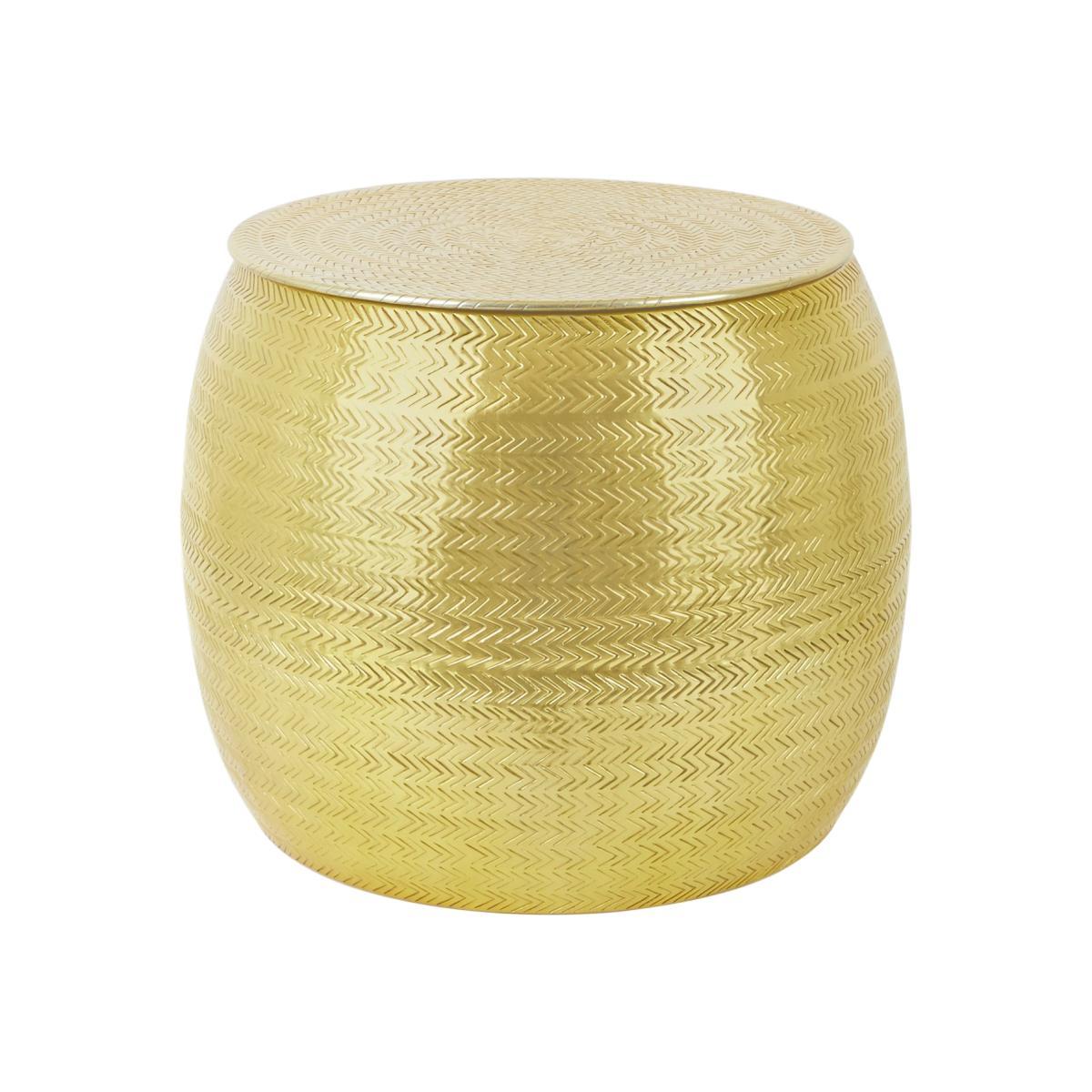 Bring some metallic souk chic to your lounge with this hand-etched storage side table. A striking design, crafted from hammered aluminium with a lustrous brass finish. Ideal for small spaces it's pure luxe on the outside, a clever storage solution on the inside. Lid off and you can stash away magazines and everyday clutter. Lid on and, voila! An ultra-glam table for drinks and nibbles.