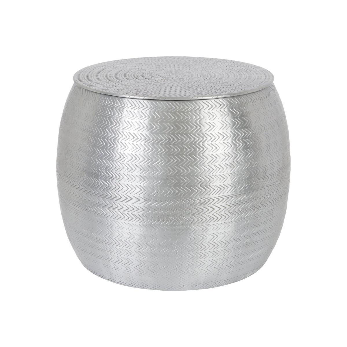 Bring some metallic souk chic to your lounge with this hand-etched storage coffee table. A striking design, crafted from hammered aluminium with a lustrous silvered finish. Ideal for small spaces it's pure luxe on the outside, a clever storage solution on the inside. Lid off and you can stash away magazines and everyday clutter. Lid on and, voila! An ultra-glam table for drinks and nibbles.