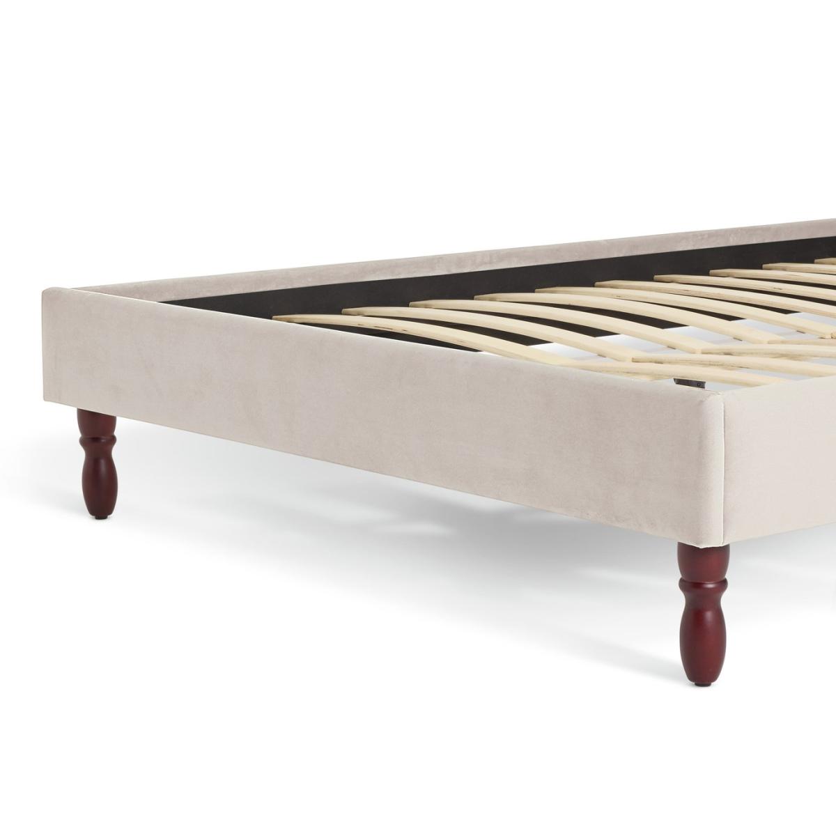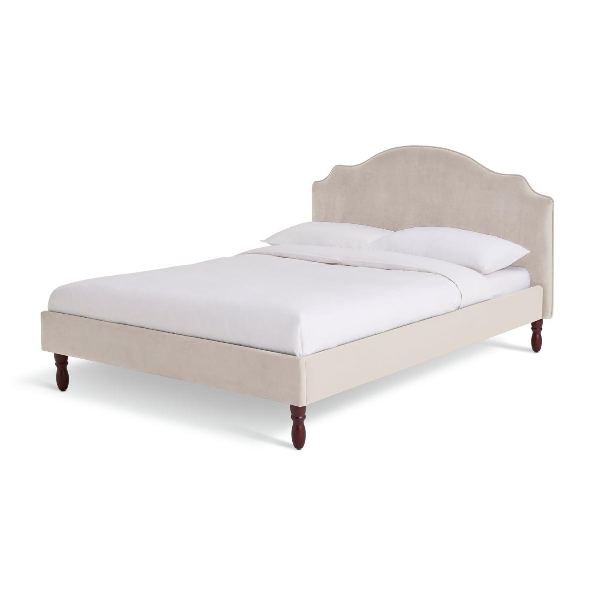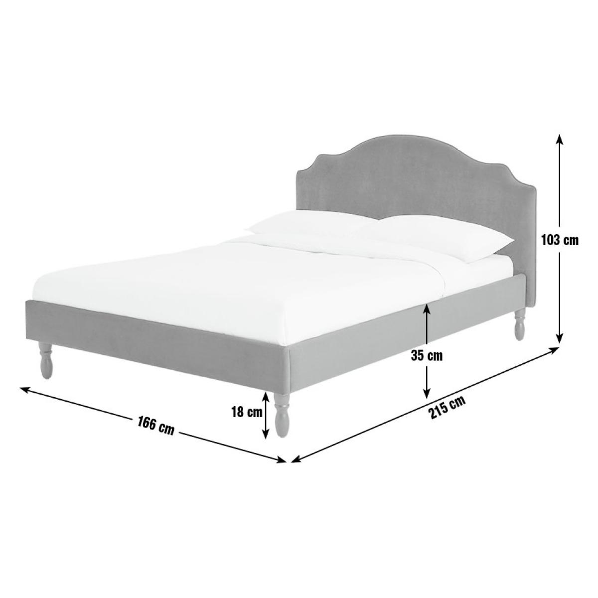 The Sophia is a beautiful kingsize bed frame. The wave shaped headboard in sumptuous natural velvet has been hand upholstered by skilled craftsmen. Definitely a bold statement piece for the bedroom. Designed with comfort in mind as well as stunning looks, it offers a slatted base for additional support and mattress ventilation. Turned wooden feet offer another elegant detail and the finishing touch to this luxurious and elegant soft-to-the- touch bed. Part of the Sophia collection. Base with sprung wooden slats. Size W166, L215, H103cm. Height to top of siderail 35cm. 18cm clearance between floor and underside of bed. Weight 38.7kg. Total maximum user weight 110kg. Self-assembly - 2 people recommended. Package Dimensions: Package 1 dimensions: H10, W169, D105cm. Package 1 weight: 20kg. Package 2 dimensions: H14, W234, D21cm. Package 2 weight: 25kg. General Information: Manufacturer's 1 year guarantee. FSC certified meaning the materials used for this product are responsibly sourced.