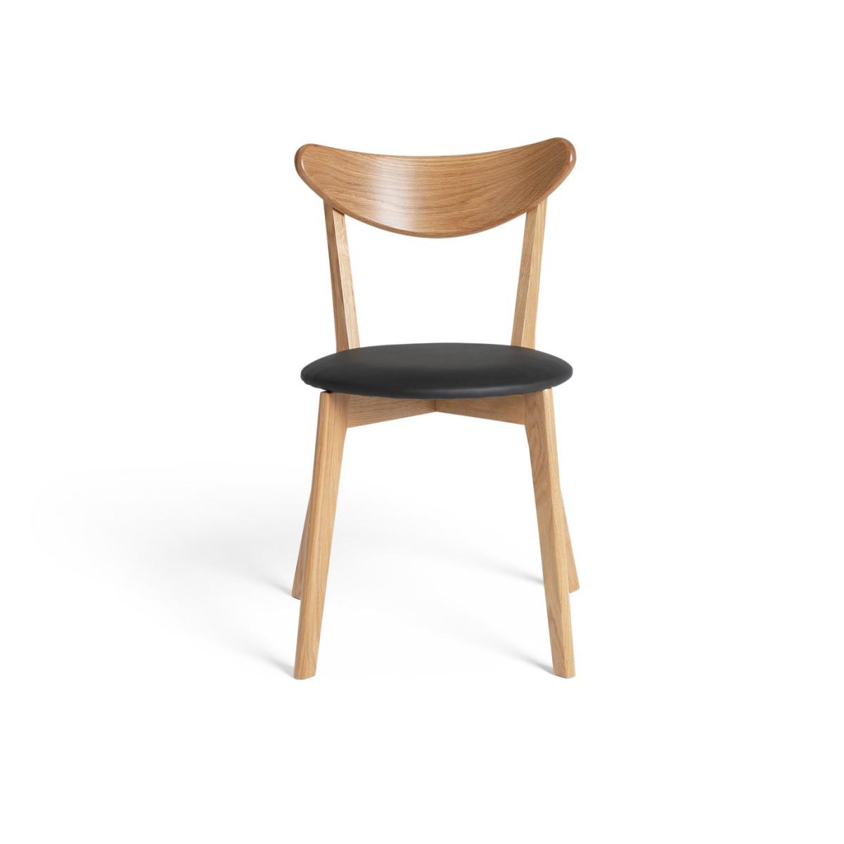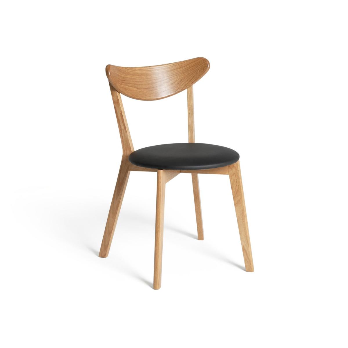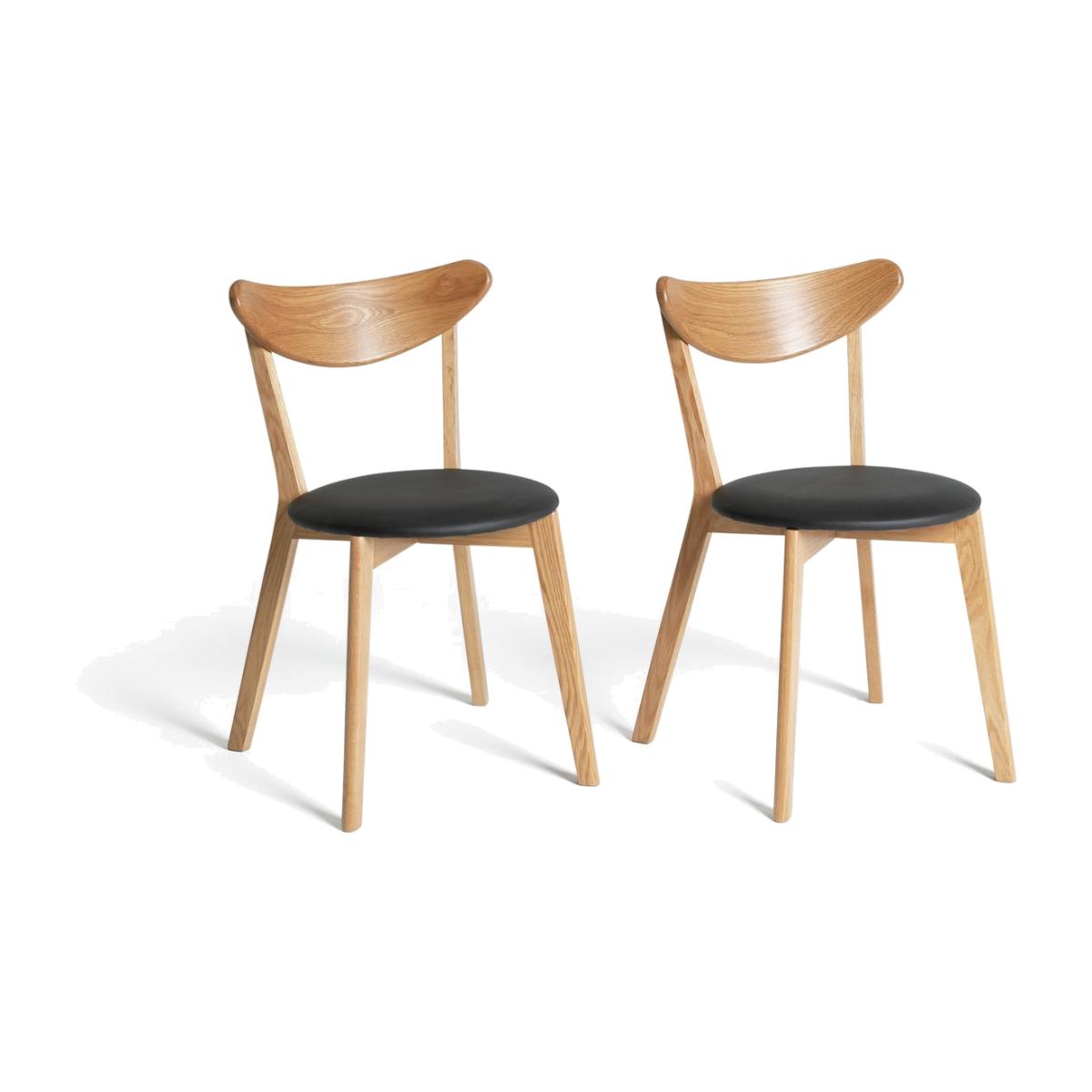 Straight from our designer's sketch book. These two Sophie chairs put comfort and craft at the top of the agenda. Natural wood and black is a classic combination. The fabulous mid century frame in 100% solid oak has a gently curved backrest and Skandi style legs. Look great as a spare seat in the lounge or pop them around a dining table. Softly padded for comfort, the faux leather seat encourages your guests to linger for longer. Two might not be enough.