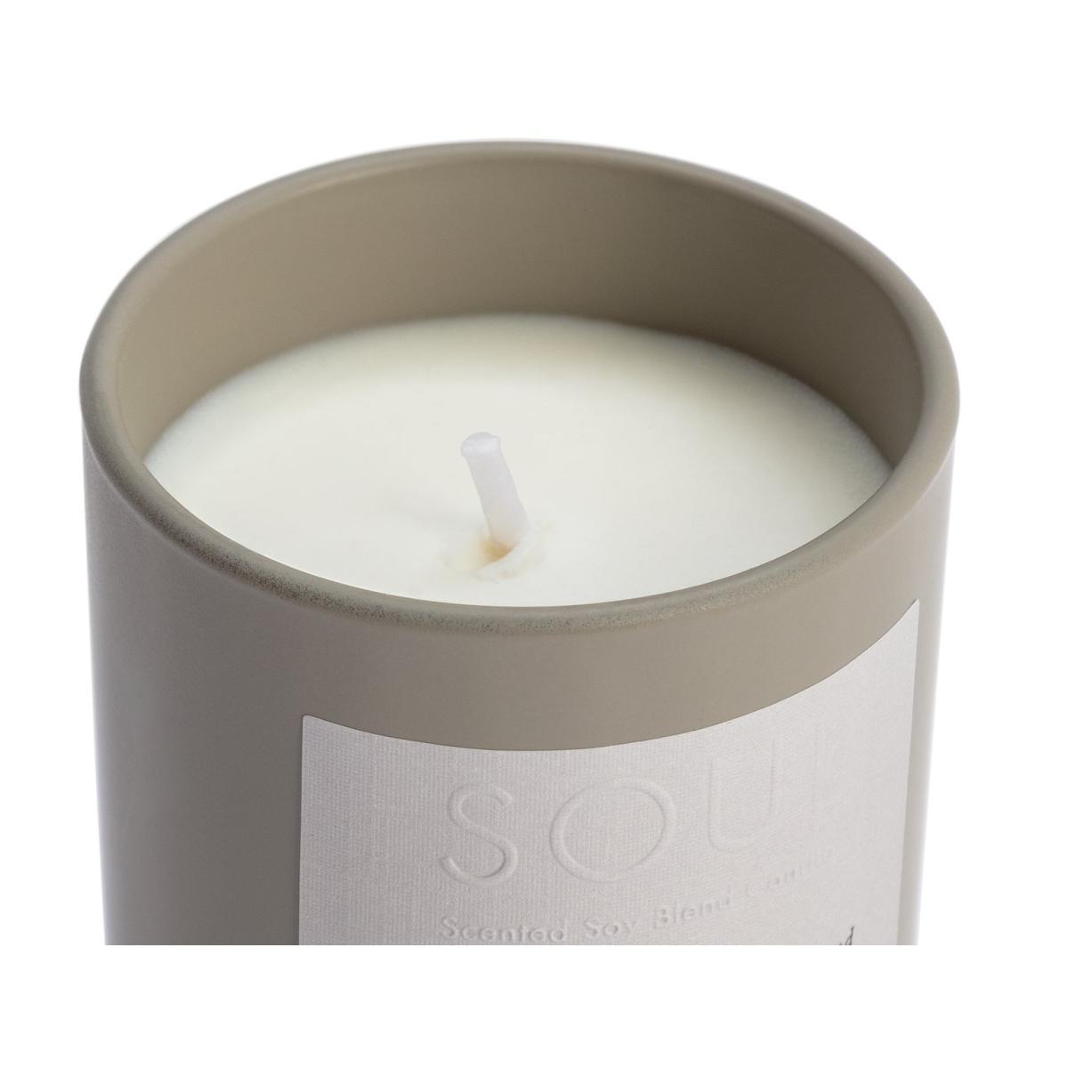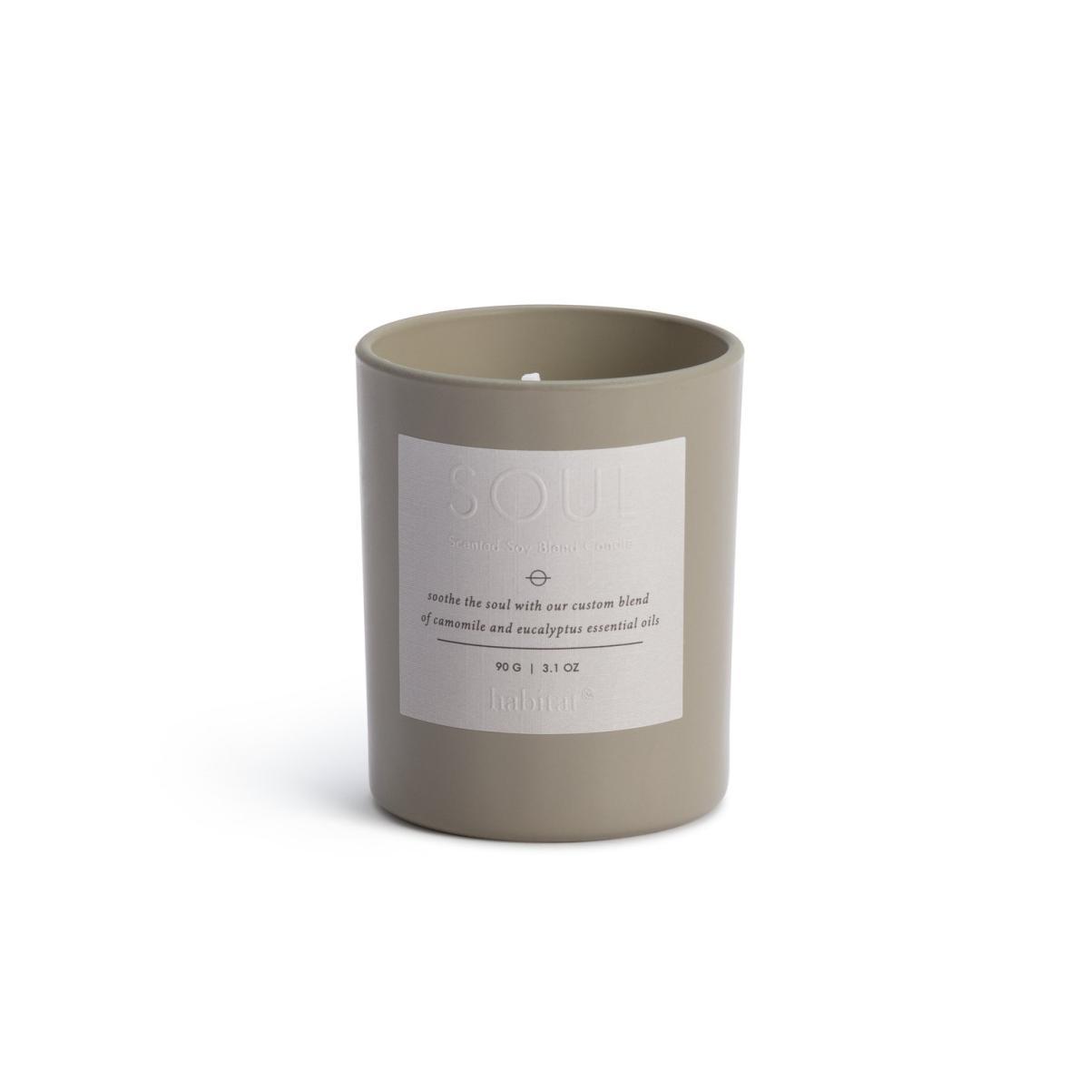 Soothe the soul with our scented soy candle. Let the gentle aromas of Camomile and eucalyptus calm you as you unwind after a long day. Strike a match and let the fragrance float throughout your home. In a natural taupe holder, this simple votive looks good on a mantle or bedside table. Dot a few around the bath while you soak. With 20 hours of burn time, it keeps on giving, too. Time to get Zen. Ready to relax? Check out more aromatherapy essentials in our Mind, Body, Soul and Spirit collection. Contains (scent) essential oils. Natural wax blend. Camomile & Eucalyptus scent. Approximate burn time 20 hours. Size H7.5, W6, D6cm.