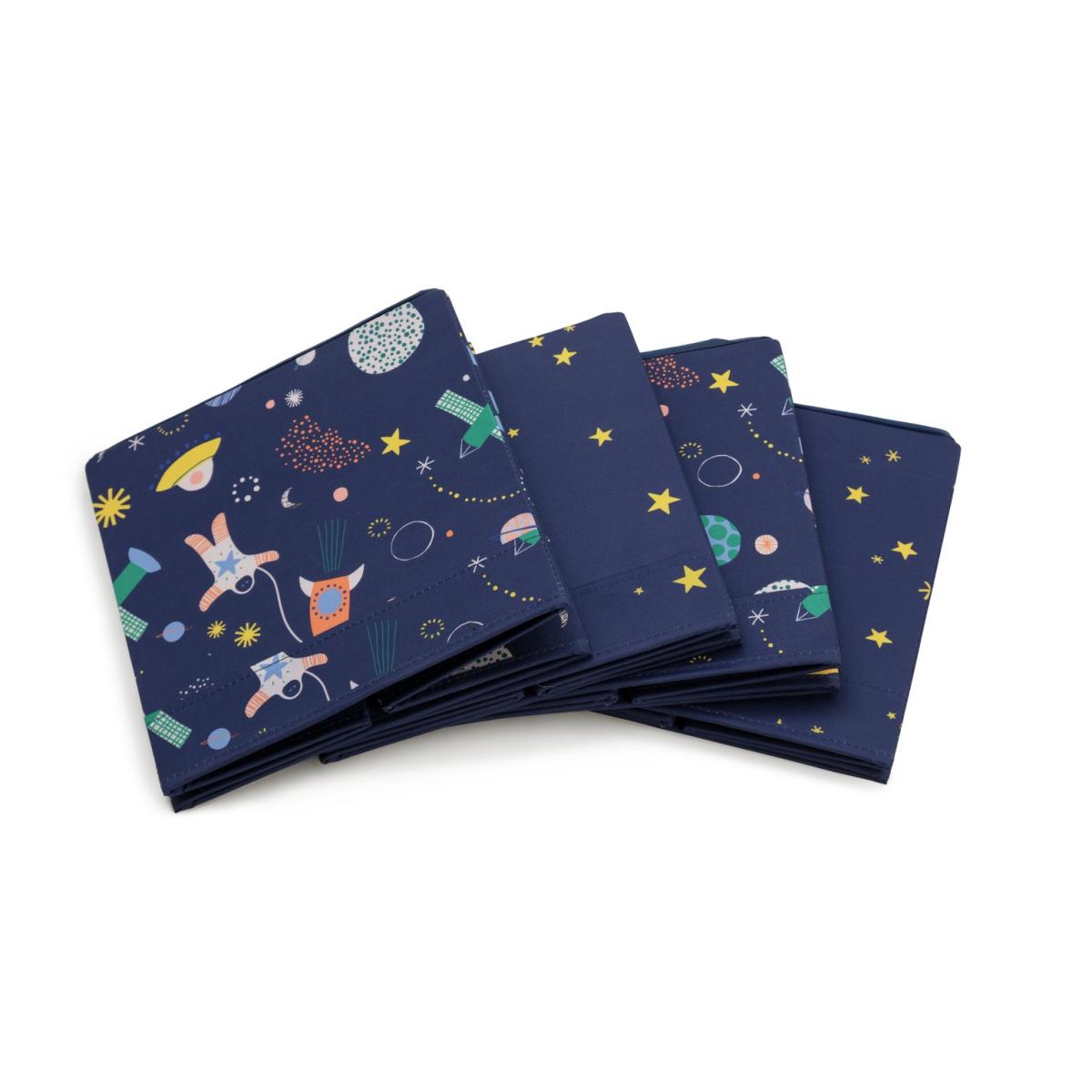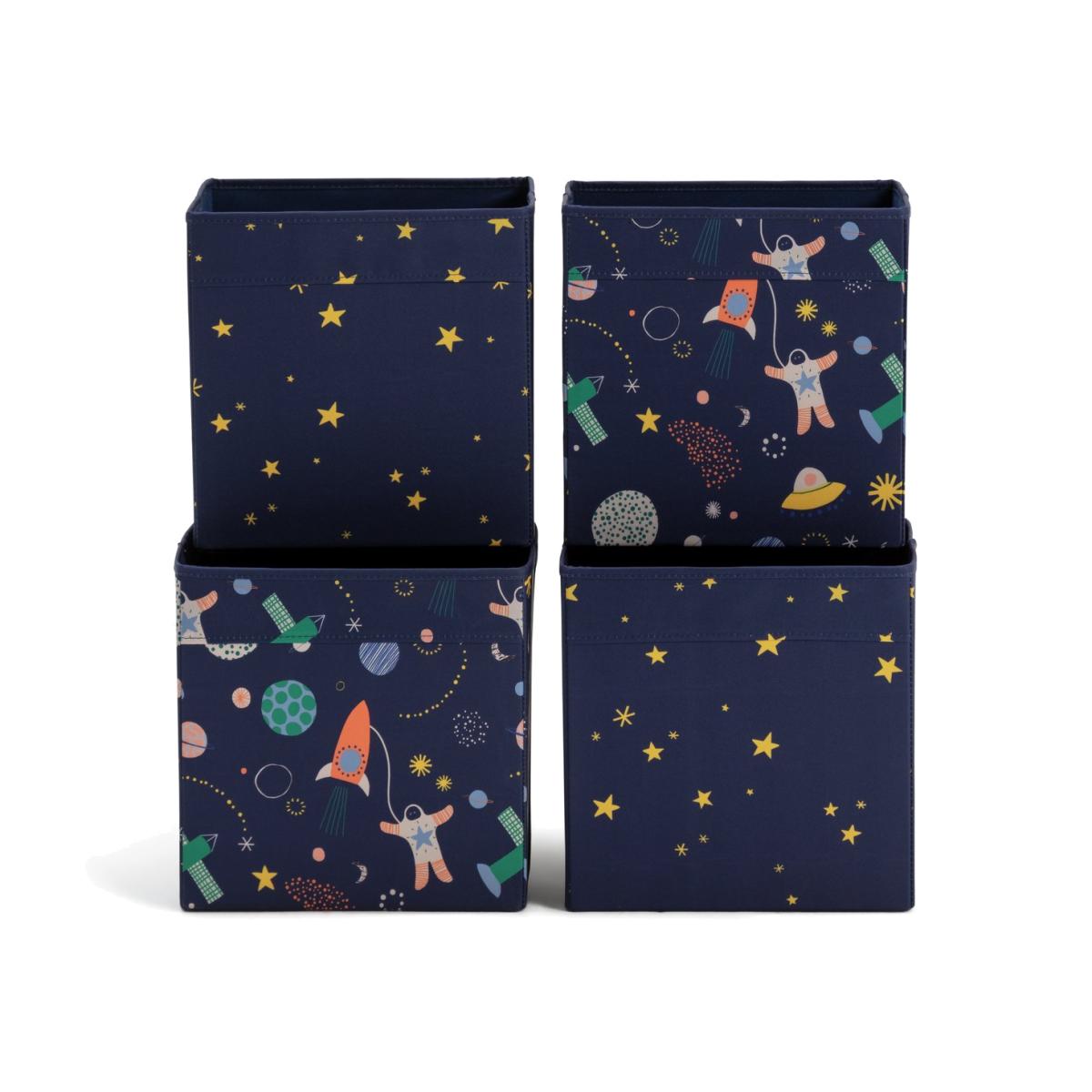 Have your little space cadets got enough stuff to fill a planet sized cupboard? These nifty fold down storage boxes are a great solution. Made from sturdy canvas, with a cute stars and rockets print, they'll sit neatly in a cupboard, under a bed or on top of a wardrobe. Ideal for getting everything off the floor and neatly stowed. We have lift off! Folds for storage. Box size H28, W28, D28cm. Small box size H28, W28, D28cm. Medium box size H28, W28, D28cm. Large box size H28, W28, D28cm. Weight 1.8kg. Packed flat. General Information: Manufacturer's 1 year guarantee.