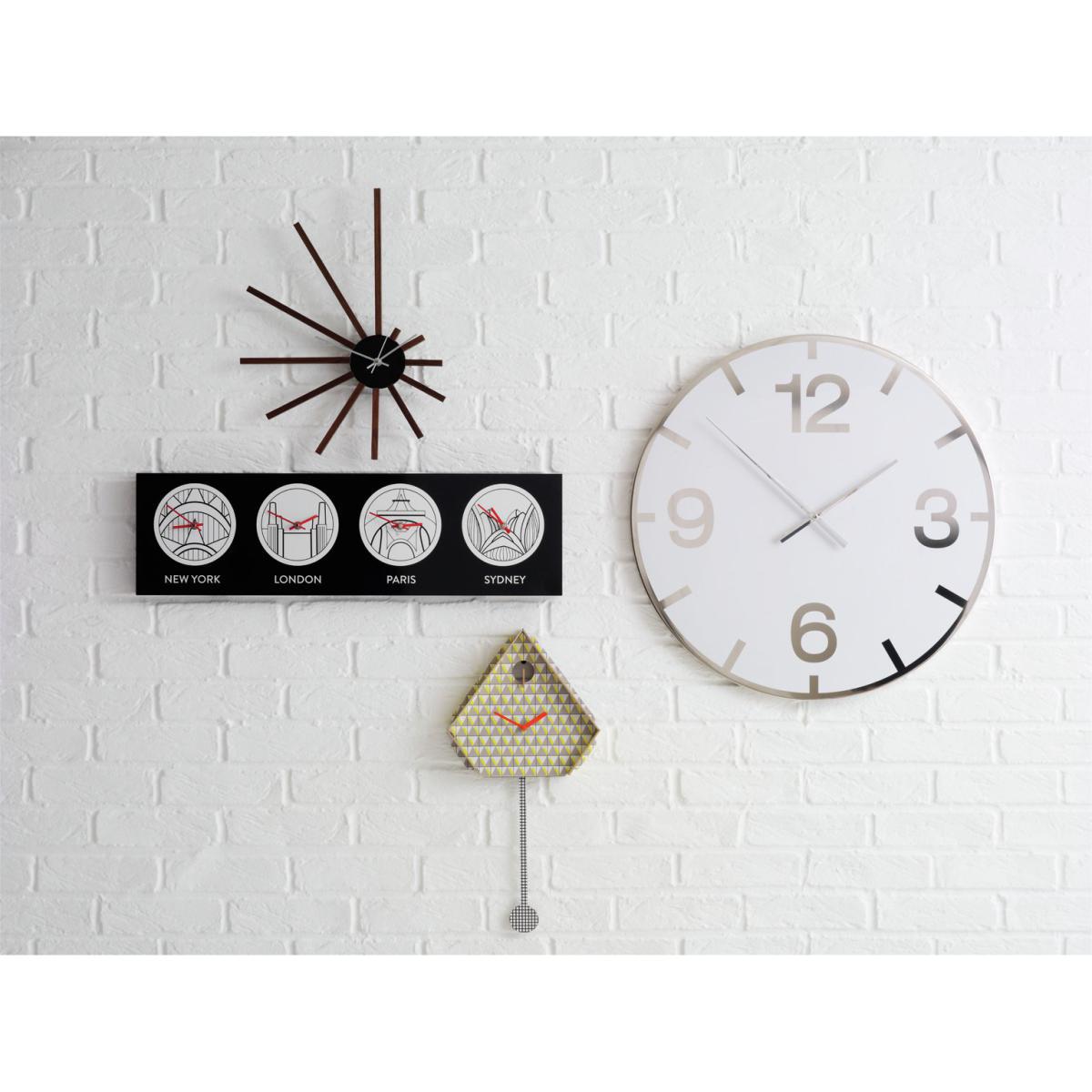 Inspired by Cuisenaire rods, which are used to teach children to count in units, this Spectrum walnut spoke wall clock has graduating sizes representing the numbers 1 through to 12. Designed by Jon Almond, the wall clock makes a striking piece that will add a decorative feature to an otherwise plain room.