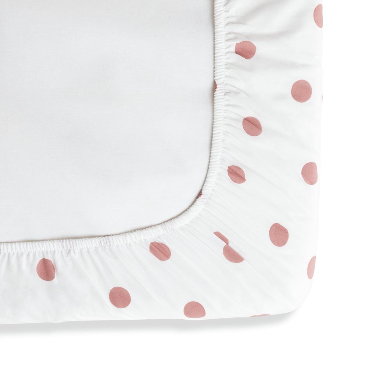 Smart bedding. You'll love how easy our fitted sheet makes bed changes. Just stretch snugly over your mattress, pop elasticated corners on and voila. It'll stay put and crease-free. And it's a looker too, with its romantic pink spotted print. This item carries the STANDARD 100 by OEKO-TEX logo, which means you can be certain that every component has been tested for harmful substances and is therefore harmless to human health. Fabric finish: percale. 50% recycled polyester, 50% cotton. 144 thread count. King size. Size L200, W150cm. Suitable for mattress depth of 28cm. Depth of frill 28cm. Elasticated corners. Machine washable.