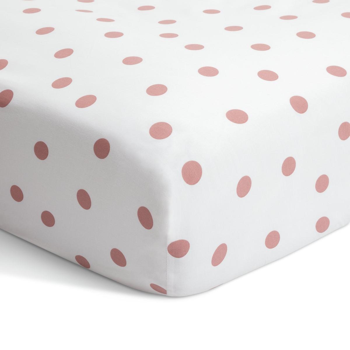 Smart bedding. You'll love how easy our fitted sheet makes bed changes. Just stretch snugly over your mattress, pop elasticated corners on and voila. It'll stay put and crease-free. And it's a looker too, with its romantic pink spotted print. This item carries the STANDARD 100 by OEKO-TEX logo, which means you can be certain that every component has been tested for harmful substances and is therefore harmless to human health. Fabric finish: percale. 50% recycled polyester, 50% cotton. 144 thread count. Single. Size L190, W90cm. Suitable for mattress depth of 28cm. Depth of frill 28cm. Elasticated corners. Machine washable.