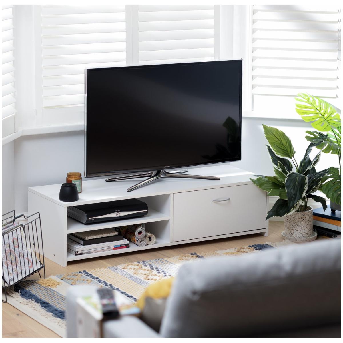 Footie fan or drama devotee? Whatever your television faves are, let's make sure you've got your telly set up in the perfect position ready for you to kick back and relax. Our black Argos Home TV stand is just the ticket with its large open shelves, that will comfortably accommodate your media boxes and games consoles. Its handy wide drawer will keep your films and games within reach, as well as hiding away any unsightly controllers and cables. No-nonsense storage.
