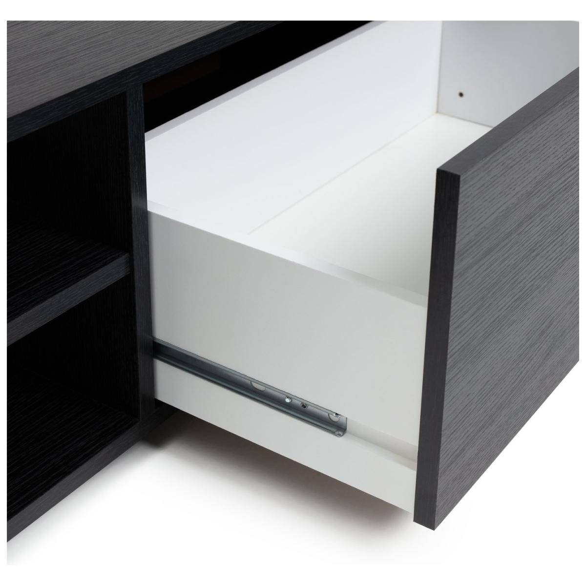 I really like this TV stand because of its sleek, modern design and versatile black finish, which makes it easy to incorporate into a range of interiors. It works particularly well in contemporary or minimalist spaces, where clean lines are key. The open shelves are perfect for media devices and decorative accents, while the drawer provides practical storage for remote controls, cables, or other essentials. To style it, consider pairing it with textured accessories like a woven basket or a decorative tray to add visual interest without cluttering. This piece’s compact size makes it a great choice for smaller living rooms or multipurpose spaces, helping to keep things streamlined and functional.