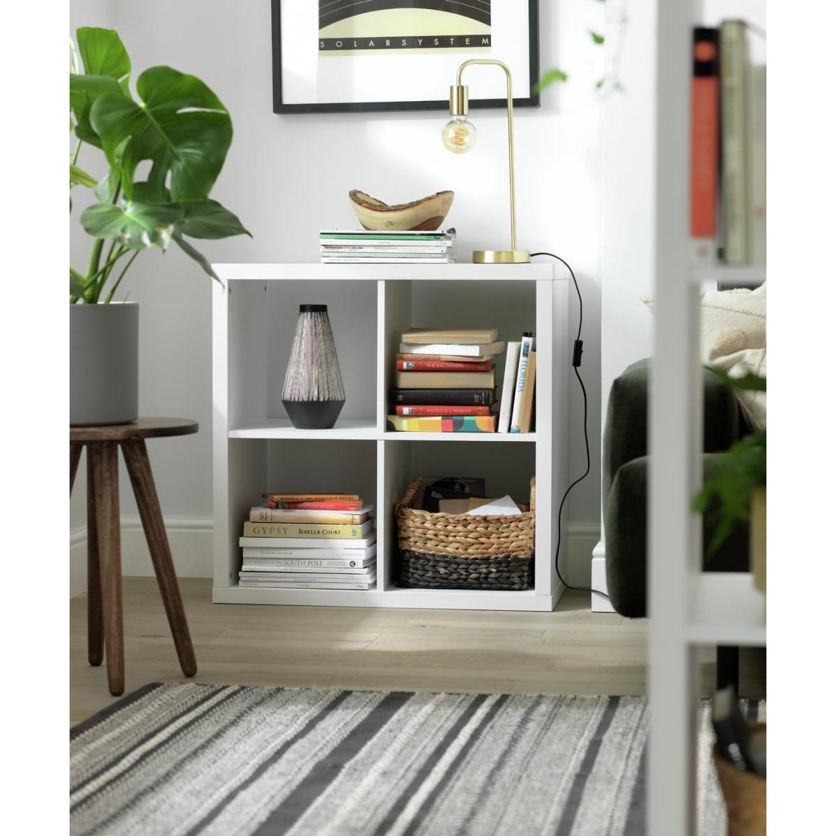 I really like the Habitat Squares Plus 4 Cube Storage Unit because of its clean, minimalist design and versatility. Its white finish makes it an easy fit into a variety of interiors-from modern, Scandinavian-inspired spaces to more casual, eclectic setups. It works well for organising everything from books and decorative items to storage baskets, which can add colour and texture. When styling, consider layering items inside each cube for visual interest and mixing open and closed storage to keep things tidy. It’s a practical piece that can serve as a coffee table, room divider, or a functional storage solution in living rooms, bedrooms, or even home offices.