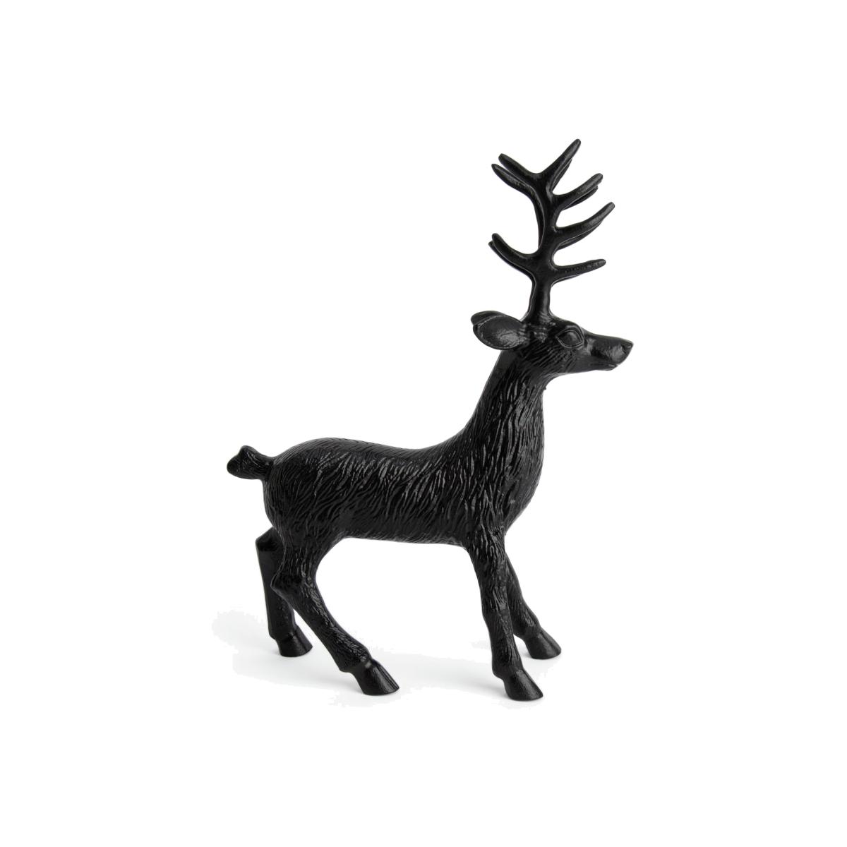 Majestic and distinctive. This objet d'art will be an eye-catching addition to your mantle or sideboard. This magnificent stag with its imposing antlers and distinctive body has a regal aura. Finished in deep black and etched with delicate fur like strokes, it's charmingly lifelike. Why stop at one when you could have a herd. We've more staggeringly good pieces from candles to lamps, for you to check out. Size H32, W25, D8.5cm.
